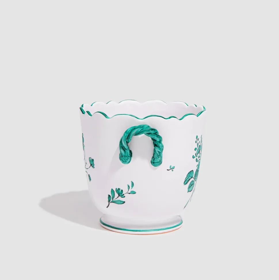 Zoë de Givenchy’s French-made ceramics, linen, and flatware display refinement above all else. This, and a certain je ne sais quoi, were gleaned from the table of her husband’s uncle, Hubert de Givenchy, the legendary couturier, and one of the century’s finest hosts. The handmade Camaïeu collection takes inspiration from Louis XV for its floral pattern in tasteful green. The rich floral design and classical 17th-century verrière traditionally decorated glasses on ice but can be applied to all your contemporary needs: potted plants, herbs, or sharpened pencils.