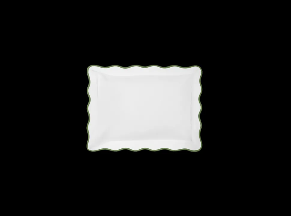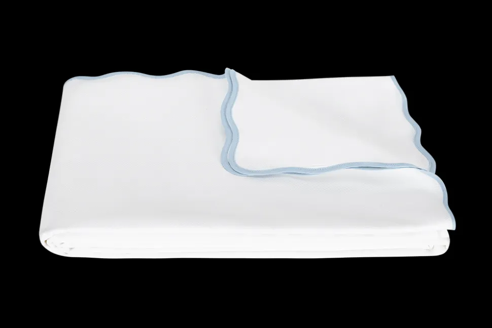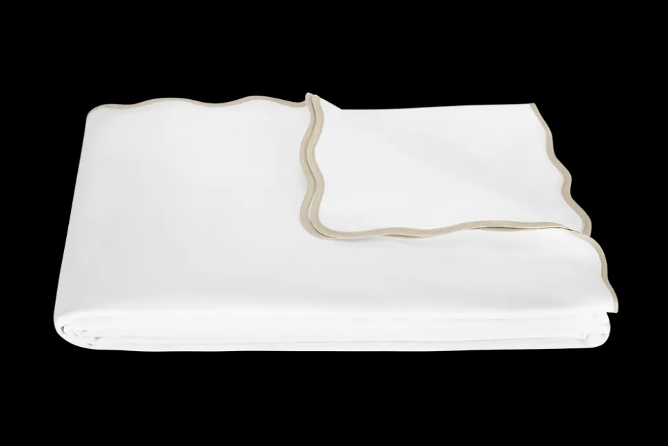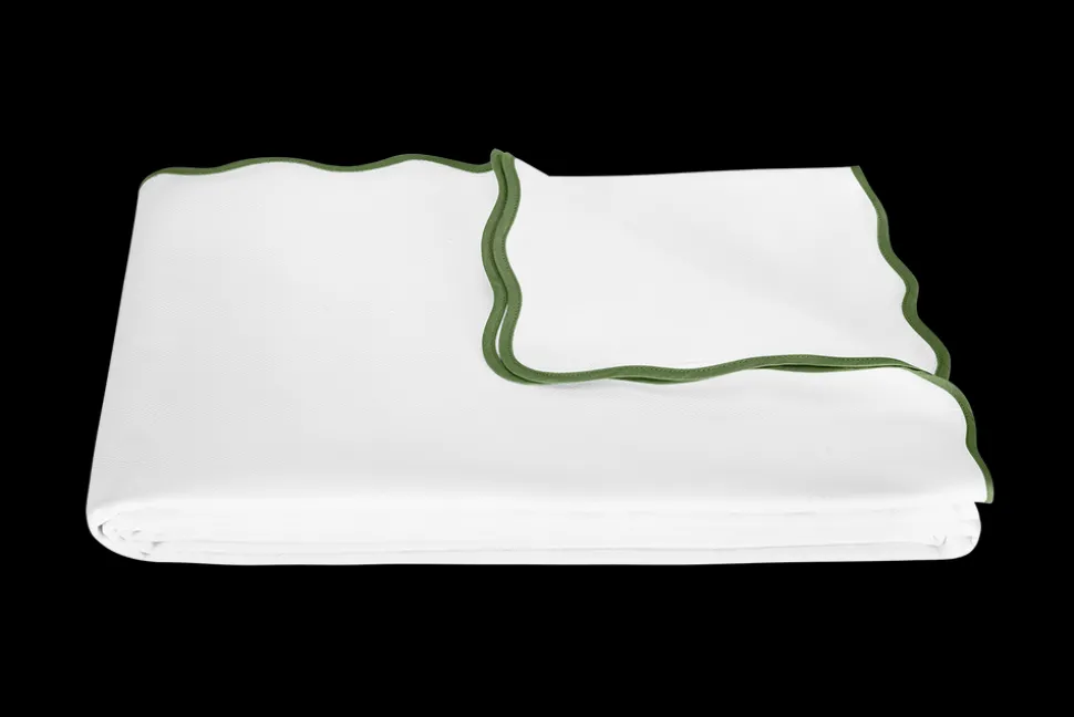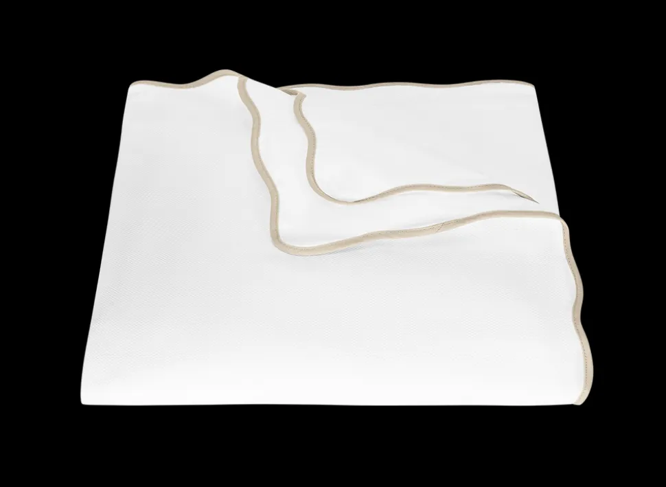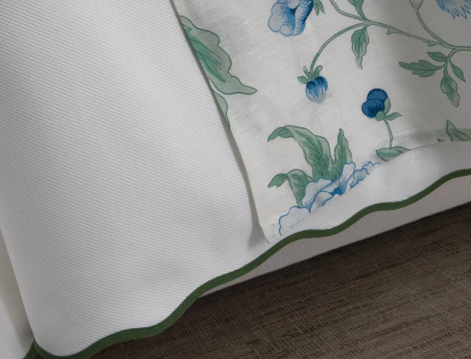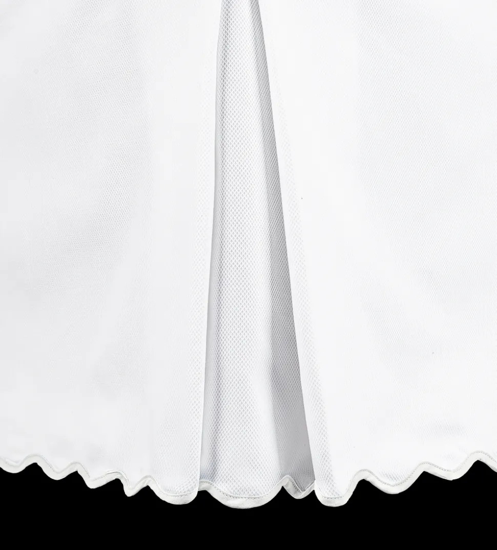For nearly 100 years and three generations, Matouk has handcrafted luxury linens from the world’s finest materials. Their dedicated artisans in Fall River, Massachusetts are committed to creating the highest quality, most-loved bed, bath, and table linens for your home. The signature style for the new Camilla Piqué Collection is a small-scale triangular weave that brings a crisp feel to coverlets, shams, and more. Crafted in 100% cotton, this collection offers a fresh take on Matouk’s signature scallop edge. Bed skirts arrive as one piece, with decking panel to be placed between mattress and box spring.