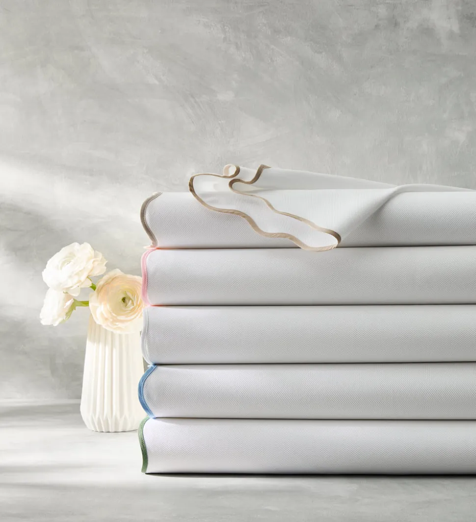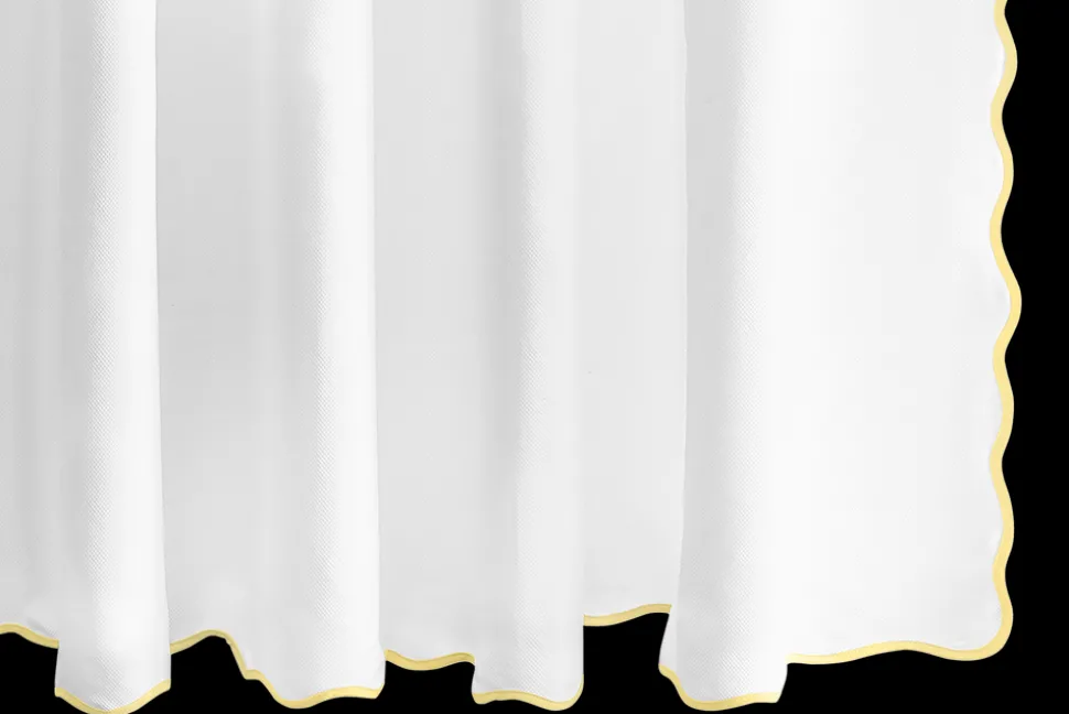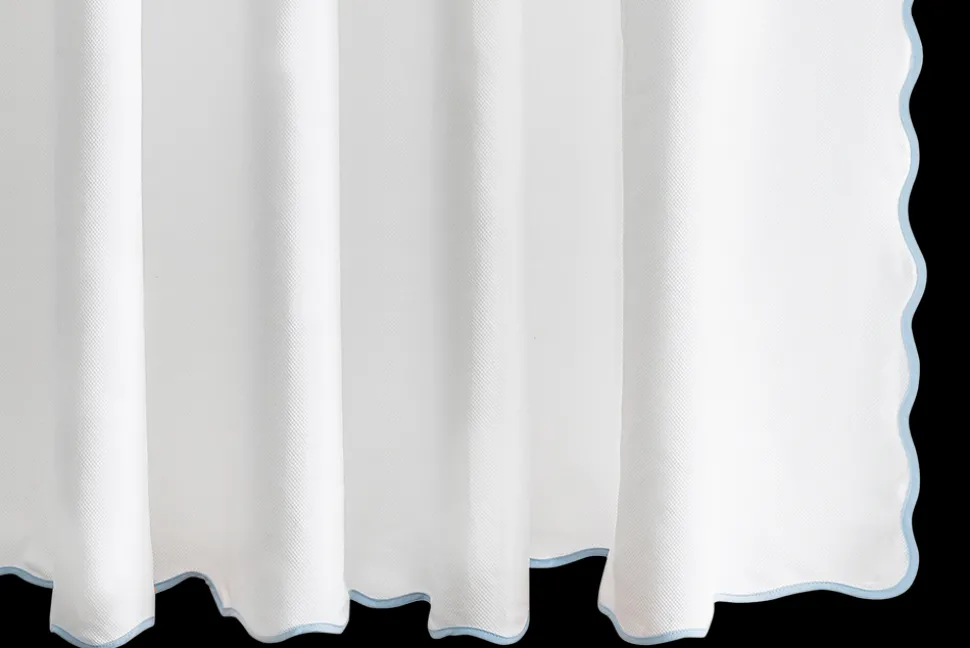 For nearly 100 years and three generations, Matouk has handcrafted luxury linens from the world’s finest materials. Their dedicated artisans in Fall River, Massachusetts are committed to creating the highest quality, most-loved bed, bath, and table linens for your home. Crafted in a gorgeous triangular cotton weave, the Camilla Pique Scallop Shower Curtain is finished with a scallop edge in a color palette that coordinates with the Cairo Scallop towel collection.