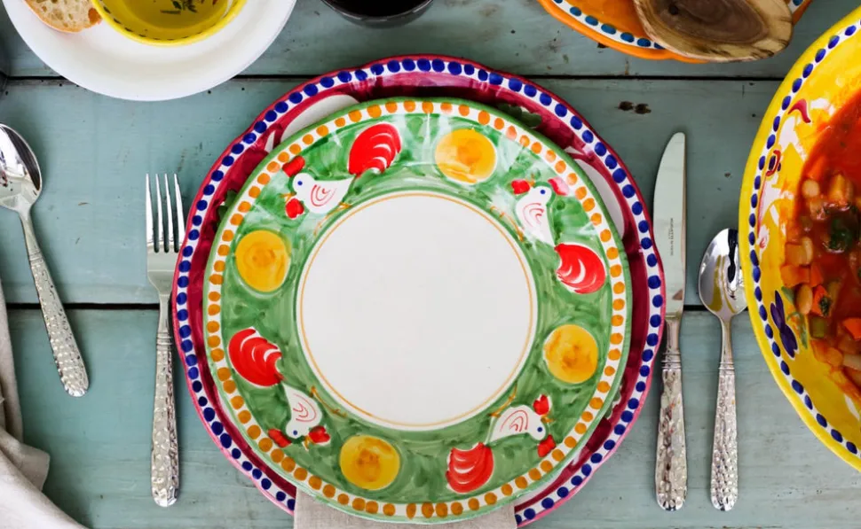 Inspired by Italian lifestyle, history, and culture, VIETRI uses the highest-quality clays from the soil of Italy’s countryside to produce beautiful, everyday items for your home. Hand-painted details, quality glazes, and fine craftsmanship help you savor the moments spent at your table, and the company of those who join it. This collection calls out to the Amalfi coast with rich colors and whimsical designs of farmland fauna. The Campagna Service Plate/Charger is a lively, sophisticated way to serve your favorite mains, like pastas, or steak Florentine off the grill.