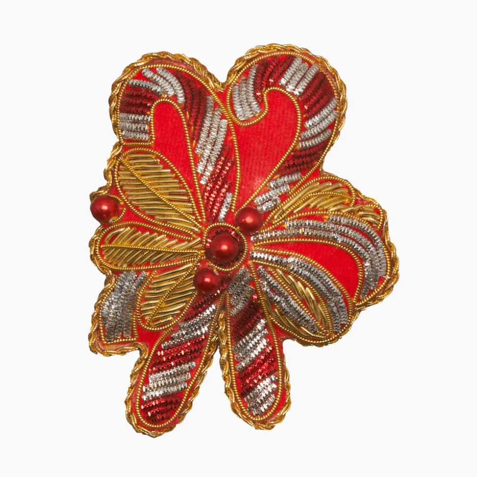 Founded in 2012, Henry Handwork brings joy to the everyday with handmade textiles for the home. Placing tradition and quality at the forefront, the brand resurrects the fading craft of hand-embroidery and needlework, embracing the heritage of finely-wrought European linens. The Candy Canes Ornament is embellished with beads, metallic thread and hand-stitched on velveteen fabric. A traditionally festive and joyous addition to any tree.