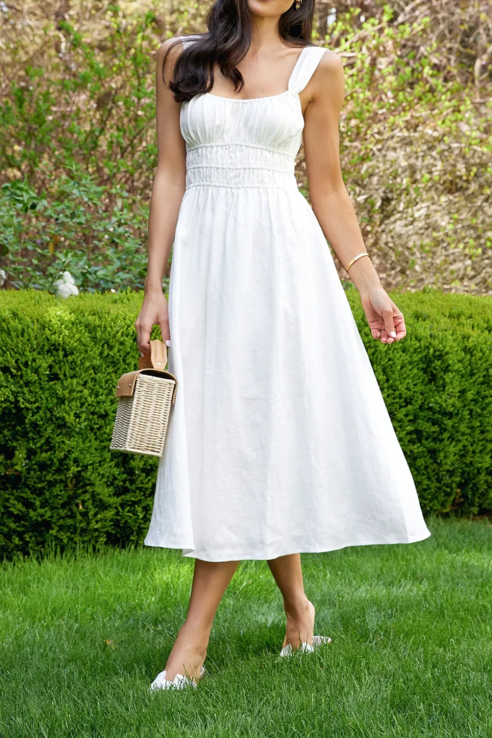 Founded by influencer and Over The Moon Bride Kat Jamieson, Everyone Loves The Weekend combines her classic sense of style with a modern perspective, effortless elegance, and all the fun its name suggests. This is the quintessential summer dress, inspired by its namesake coastal Italian destination, the Capri Dress is crafted in a gorgeous linen, handpicked by Kat. Lined with, soft cotton lining, eliminating any see-through potential, its elastic waist makes it comfortable even on the hottest days.