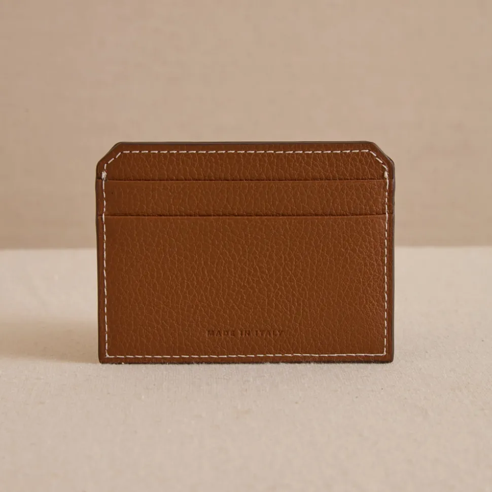 Tumbled grain Italian leather. Holds up to 6 cards. Optional monogram personalization. Made in Italy.