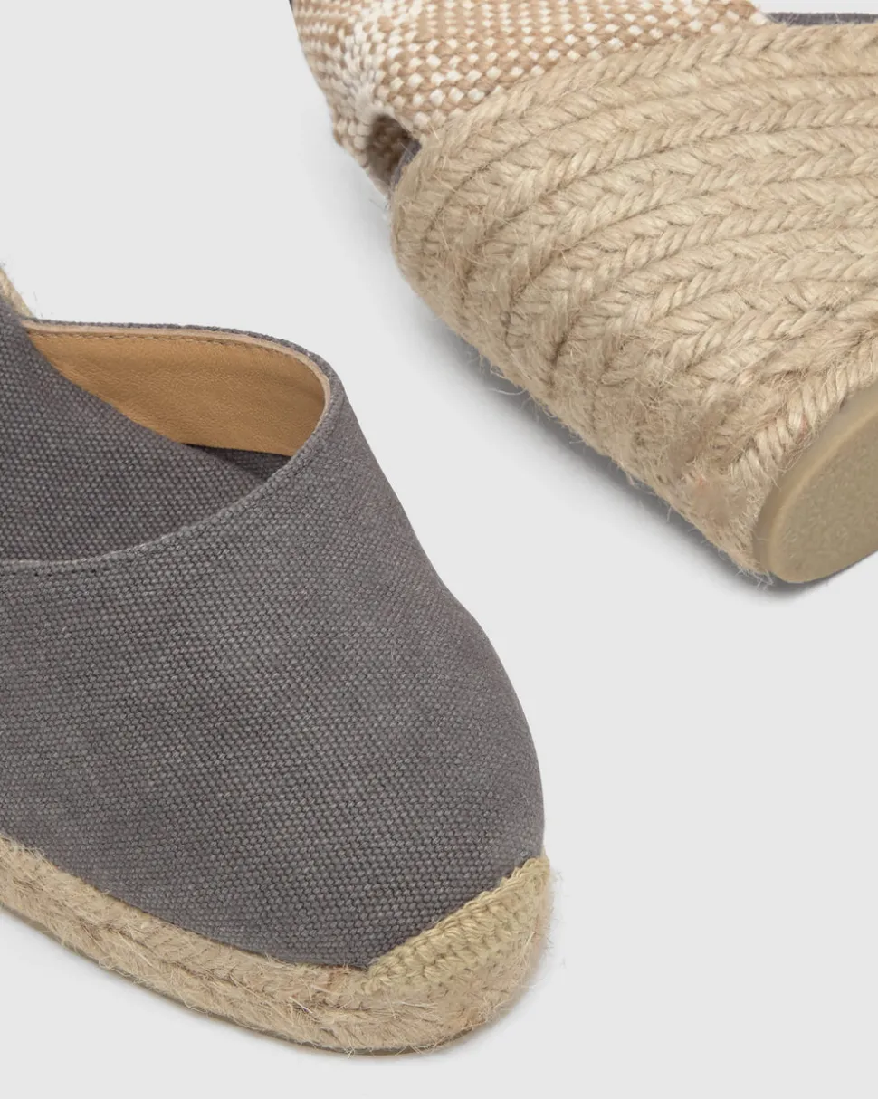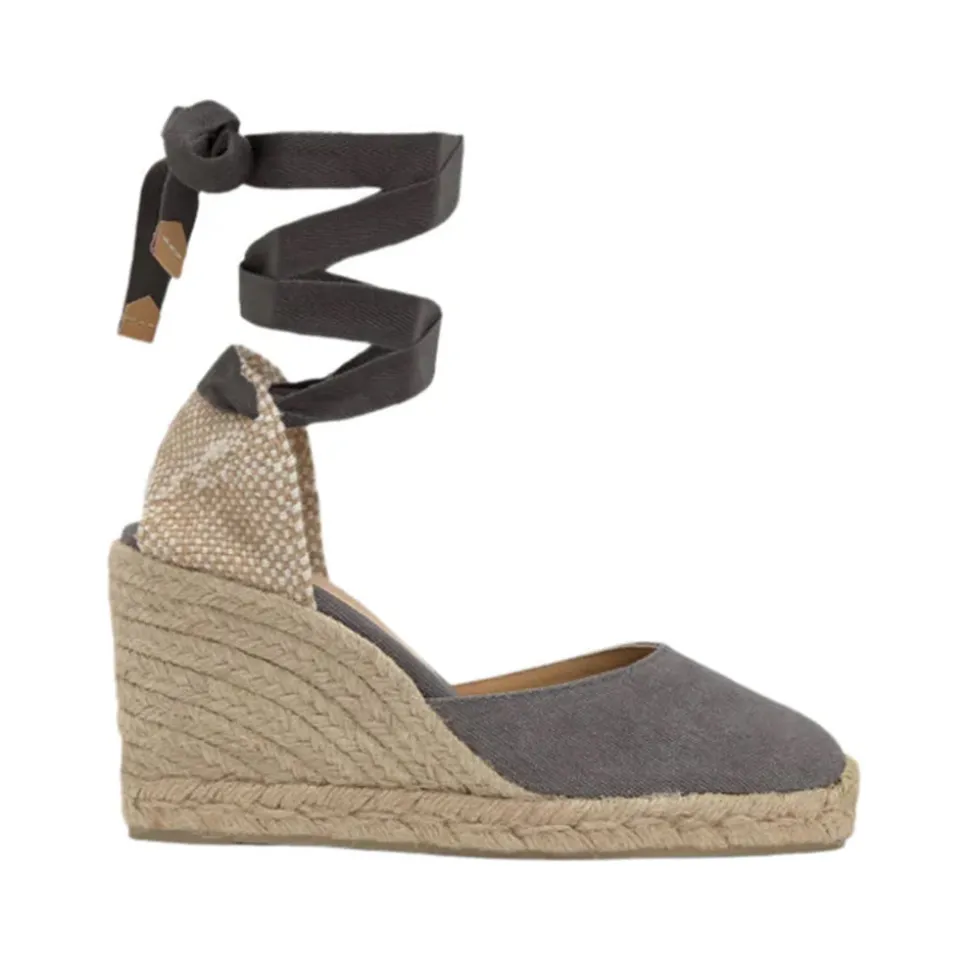 Founded in 1927, Castañer has elevated the espadrille into a sophisticated symbol of timeless design. With a commitment to craftsmanship, tradition, and natural materials, the brand continues to blend heritage with innovation, earning global recognition while staying true to its authentic roots. The Carina 8 in Charcoal is a stunning espadrille in washed organic cotton with a lace-up closure, cushioned insole, and a dyed jute wedge.
