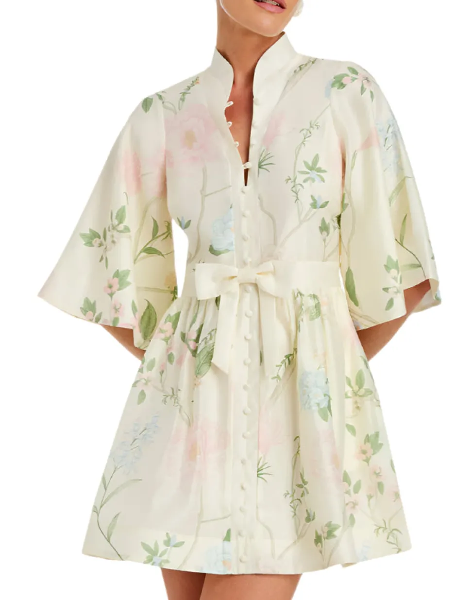Welcome to the enchanting world of Mestiza New York, where heritage meets haute couture. Founded by Alessandra Perez-Rubio & Louisa Rechter Takacs, this brand is a tribute to their shared Filipino roots and the timeless elegance of their foremothers. Each piece, crafted with the highest quality to stand the test of time, will add polish to your wardrobe, and a touch of magic, too. Flirty, floral, and effortlessly feminine, the Carmen Mini Dress in Ivory Multi is a linen organza mini with a breezy skirt, elevated mandarin collar, and pockets. Fully lined and polished, it is made for twirling into your most romantic moments.