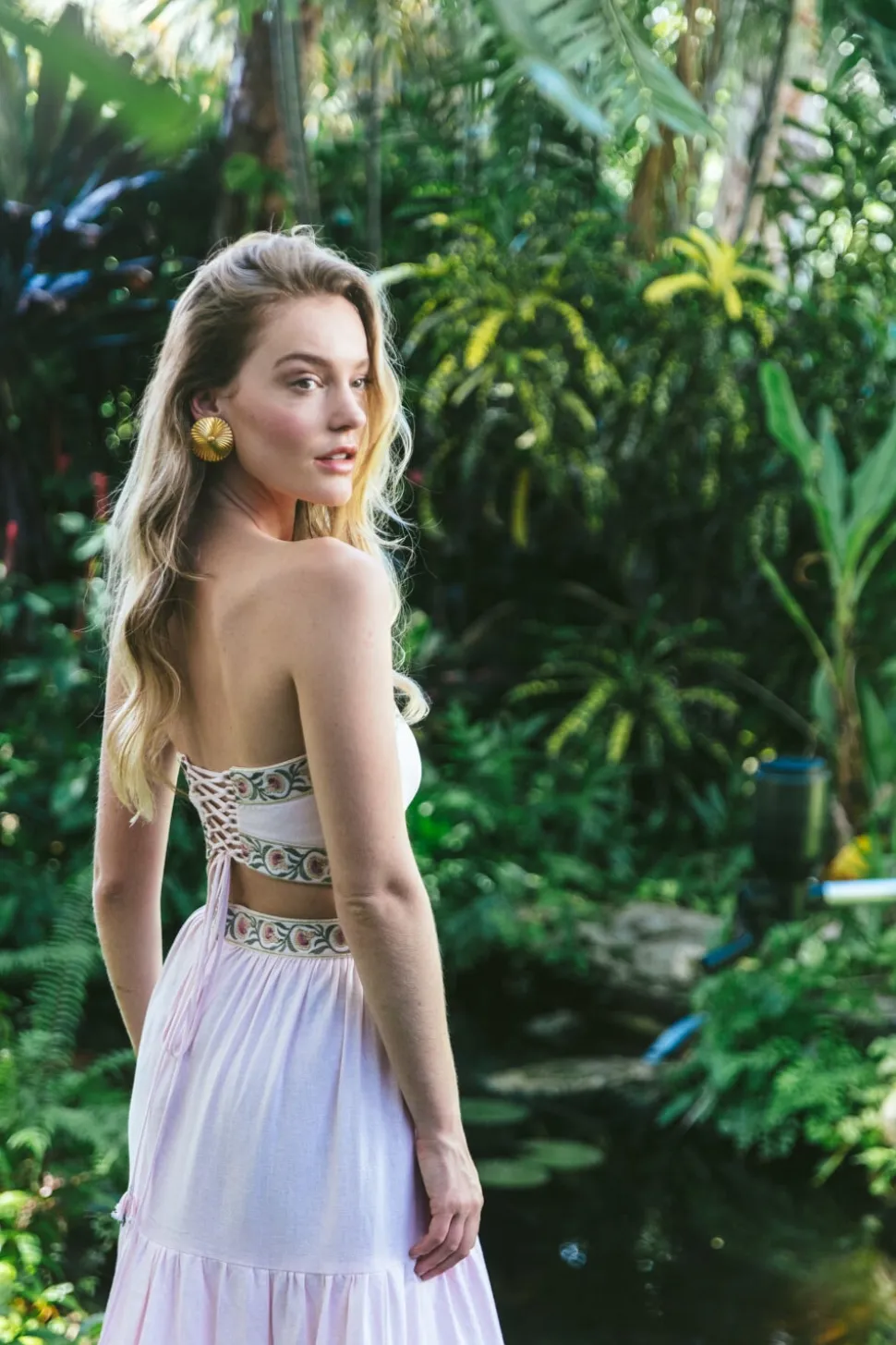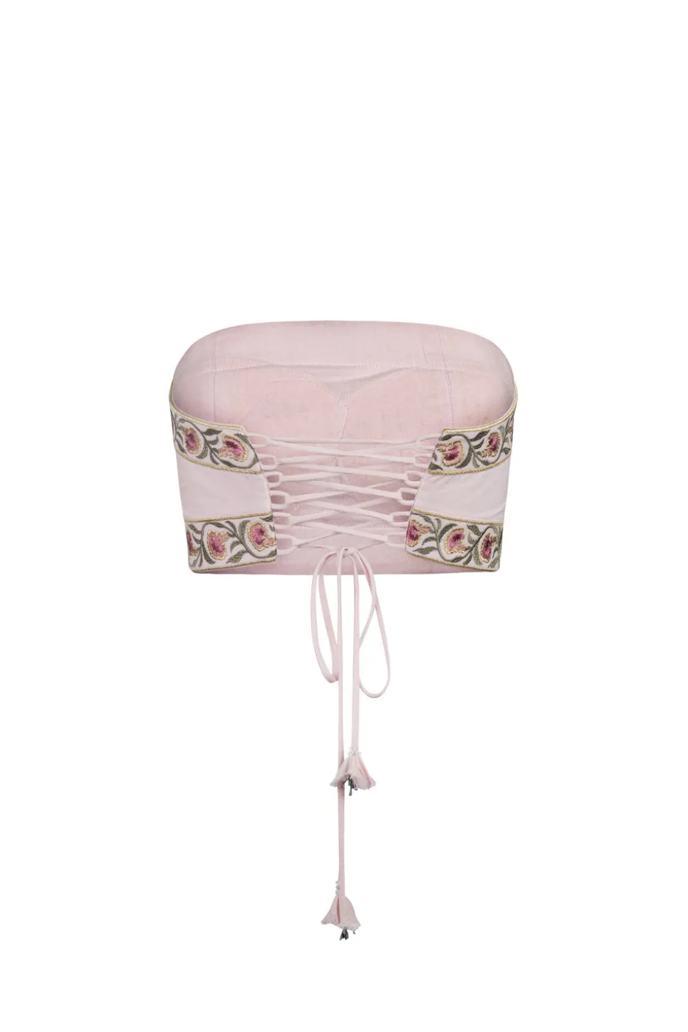 The brainchild of dynamic Iranian mother-daughter duo, Roshanak Varasteh and Leily Amirsardary Ahmed, RosewaterHouse is more than a fashion label; it is a testament to heritage, artisanal craftsmanship, and timeless design. Drawing inspiration from their cherished family heirlooms, Roshanak and Leily pay homage to the rich cultural tapestry of the Middle East, working exclusively with local artisans who breathe new life into age-old techniques, crafting exquisite, limited-edition garments that transcend age, style, and trends. These pieces are sure to become some of your most treasured. The Carnation Crop Top in Pink will surely make a statement anywhere you wear it with its intricately embroidered carnation pattern, a signature of the brand, finished with a rich gold piping. A laced bustier closure on the back and delicate handmade floral details on the tassels offer a superior fit and extra style. Wear it on its own, or pair it with the Carnation Skirt for a coordinating look.