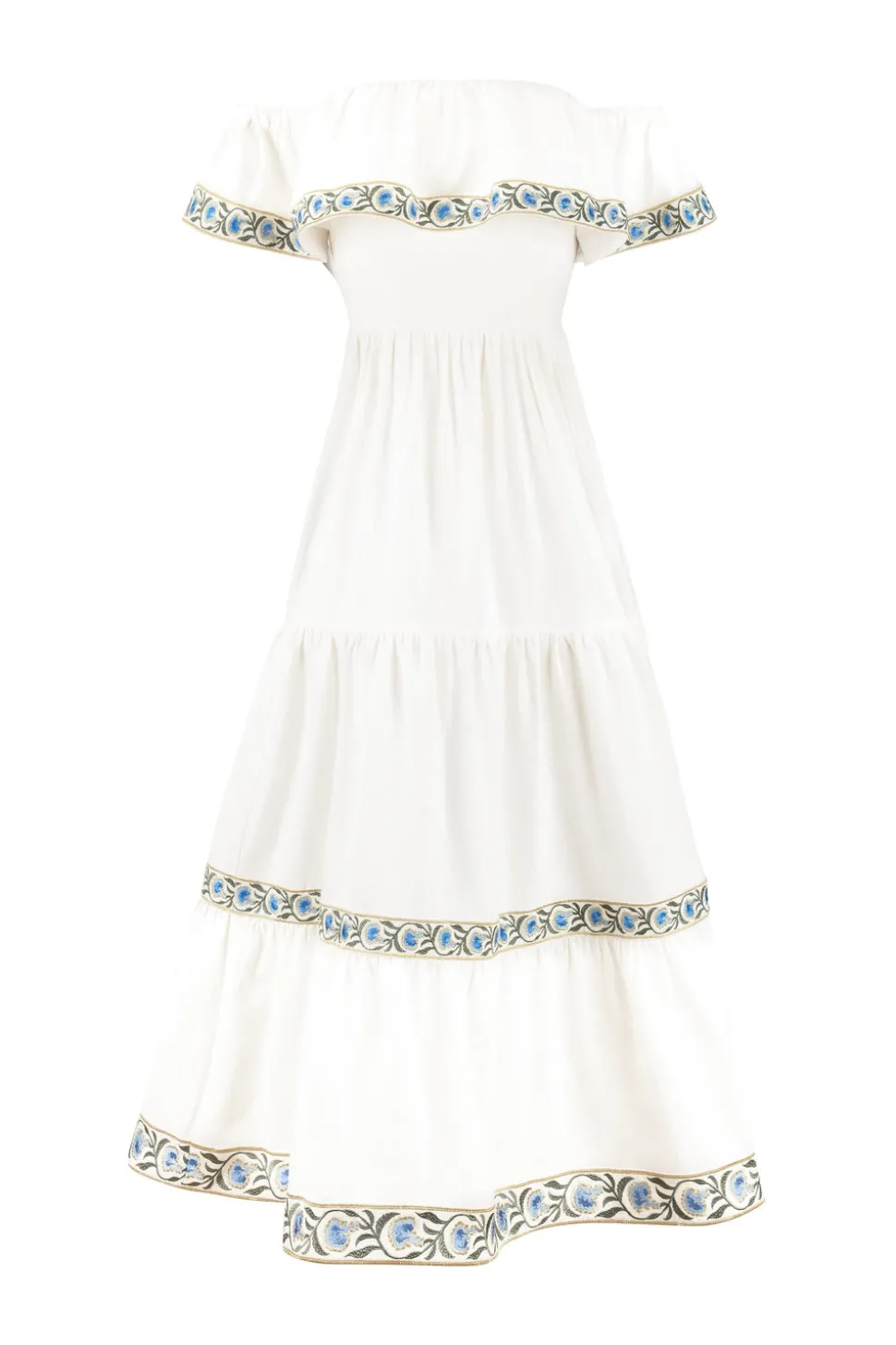 The brainchild of dynamic Iranian mother-daughter duo, Roshanak Varasteh and Leily Amirsardary Ahmed, RosewaterHouse is more than a fashion label; it is a testament to heritage, artisanal craftsmanship, and timeless design. Drawing inspiration from their cherished family heirlooms, Roshanak and Leily pay homage to the rich cultural tapestry of the Middle East, working exclusively with local artisans who breathe new life into age-old techniques, crafting exquisite, limited-edition garments that transcend age, style, and trends. These pieces are sure to become some of your most treasured. The Carnation Ruffle Dress in Off-White & Blue is a true stunner. Its romantic maxi tiered ruffle skirt and off-the-shoulder ruffle top, adorned with the iconic Rosewater House Carnation print, make it the ultimate spring and summer cocktail look.