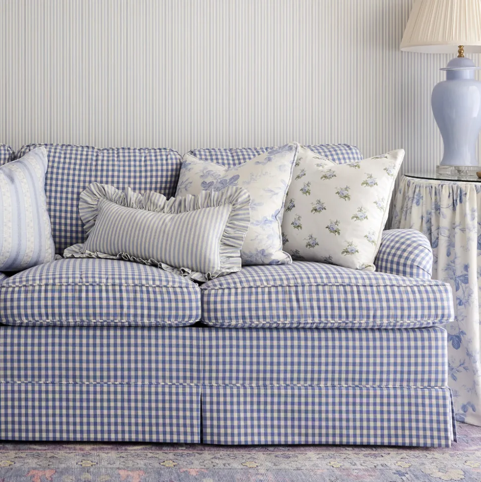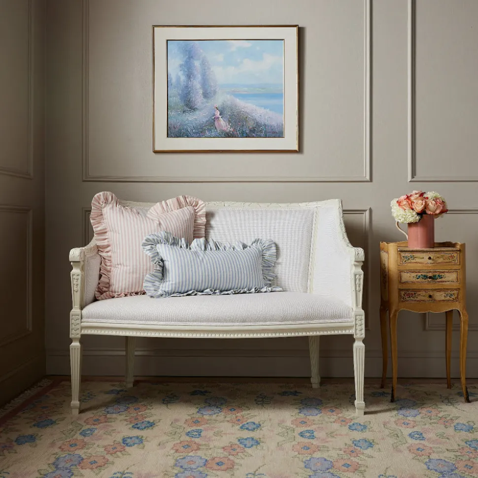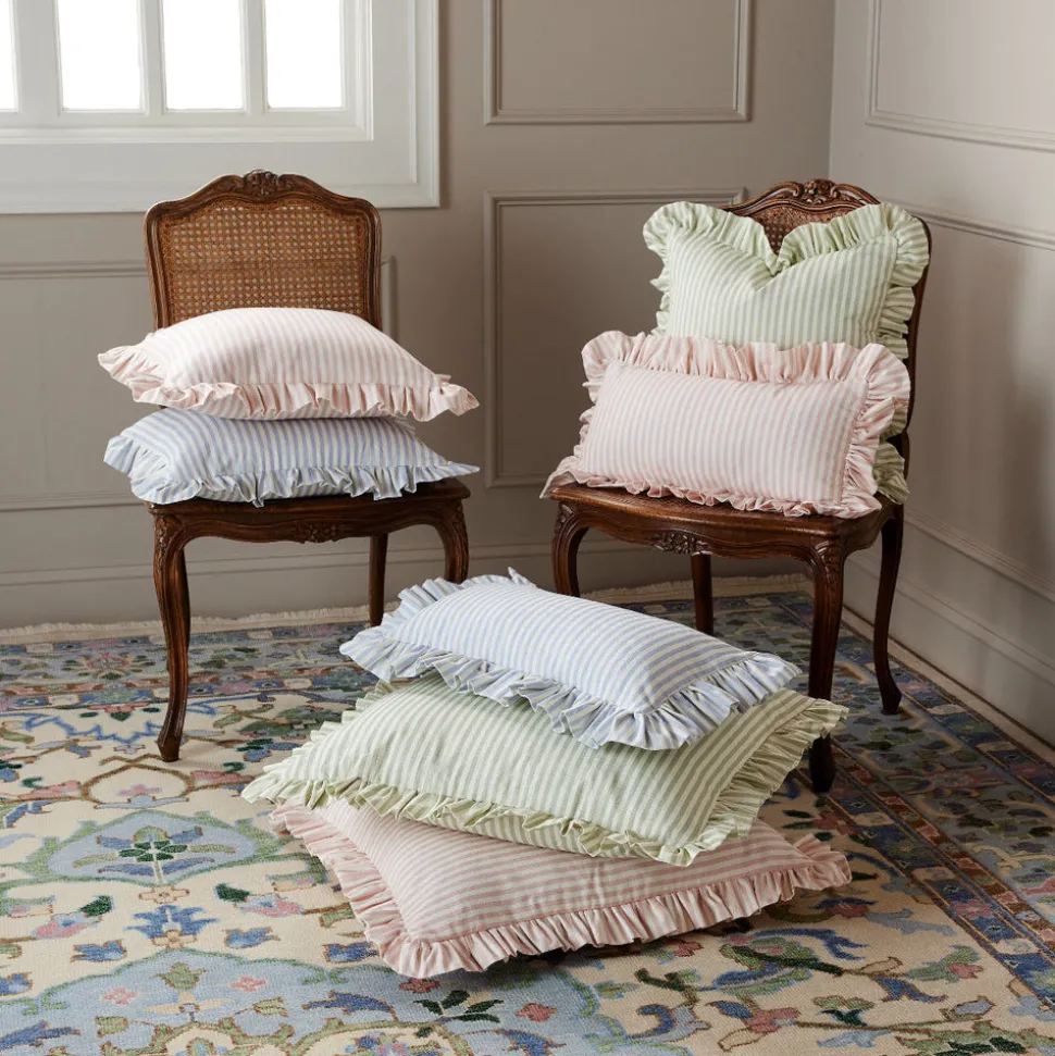 Founded on timeless design principles, Caitlin Wilson Design blends sophistication and uniqueness, embracing a variety of styles. The brand features textiles ranging from antique-inspired Persian rugs to custom pillows, wallpaper, lighting, furniture, and more. With a focus on pattern and color, Caitlin Wilson Design creates distinctive, signature interiors that bring out the full potential of every space. Say hello to effortless charm with the flirty, feminine Carolina Stripe Frill Pillow in Atlantic Blue. Made from 100% soft cotton fabric, this playful pillow is as comfy as it is chic. The delicate ruffle trim adds a touch of whimsy, while the bold stripe pattern keeps things fresh and fun.