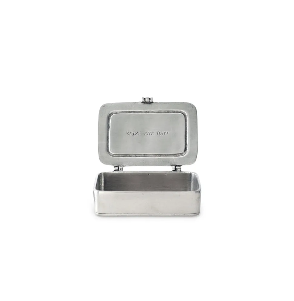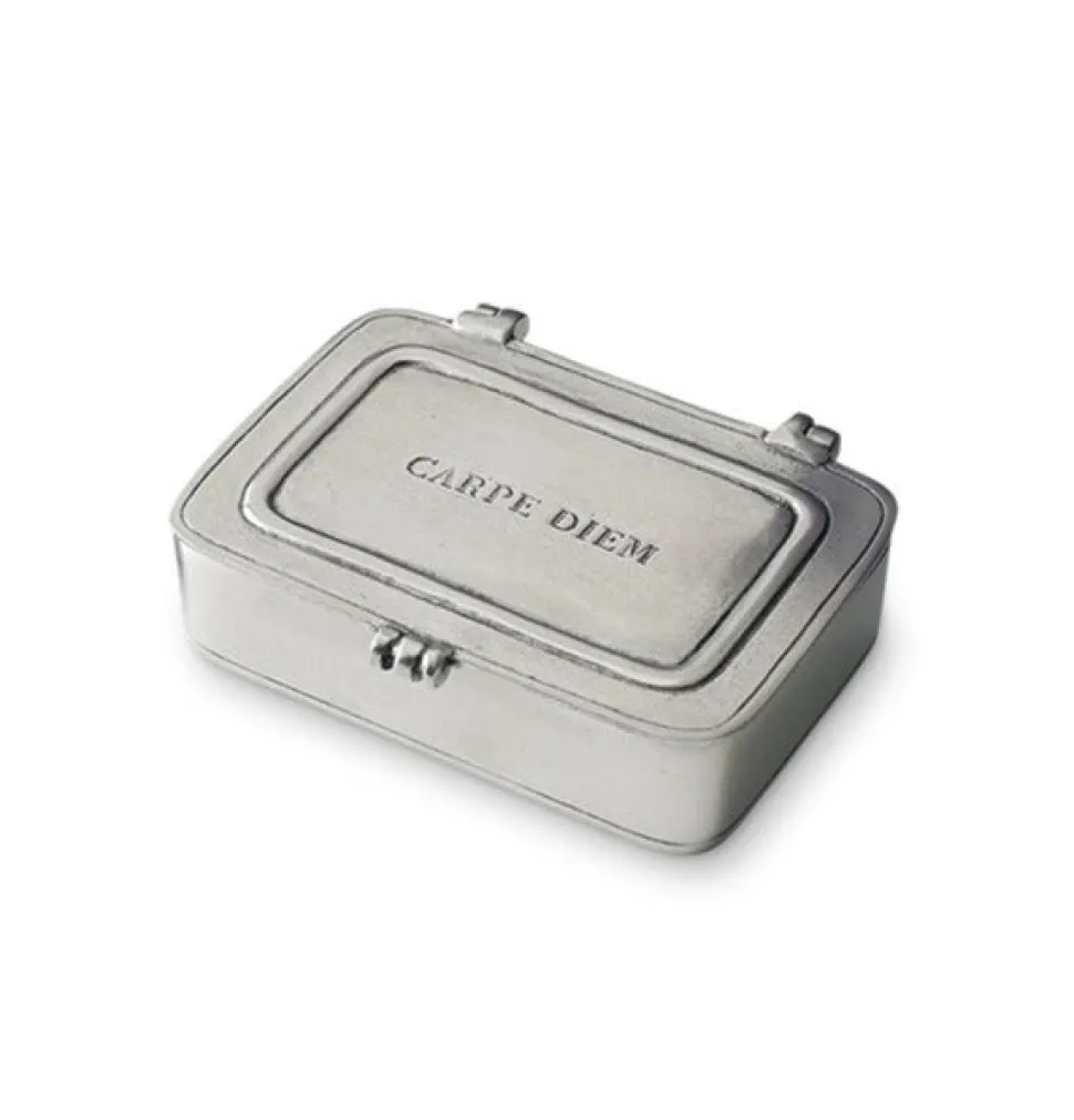 “Seize the day” thanks to this Latin-inspired trinket box that’s perfect for gift giving or holding spare change. MATCH pewter—a valuable metal composed of tin, copper, and antimony—is handmade by artisans in Northern Italy. Its classic forms harmonize with both traditional and modern settings. Each piece is made with an alloy that is food safe lead-free, FDA approved and requires very little care. Every piece of Match pewter is marked with the manufacturer’s “M” hallmark as well the mark of tin content “95.”