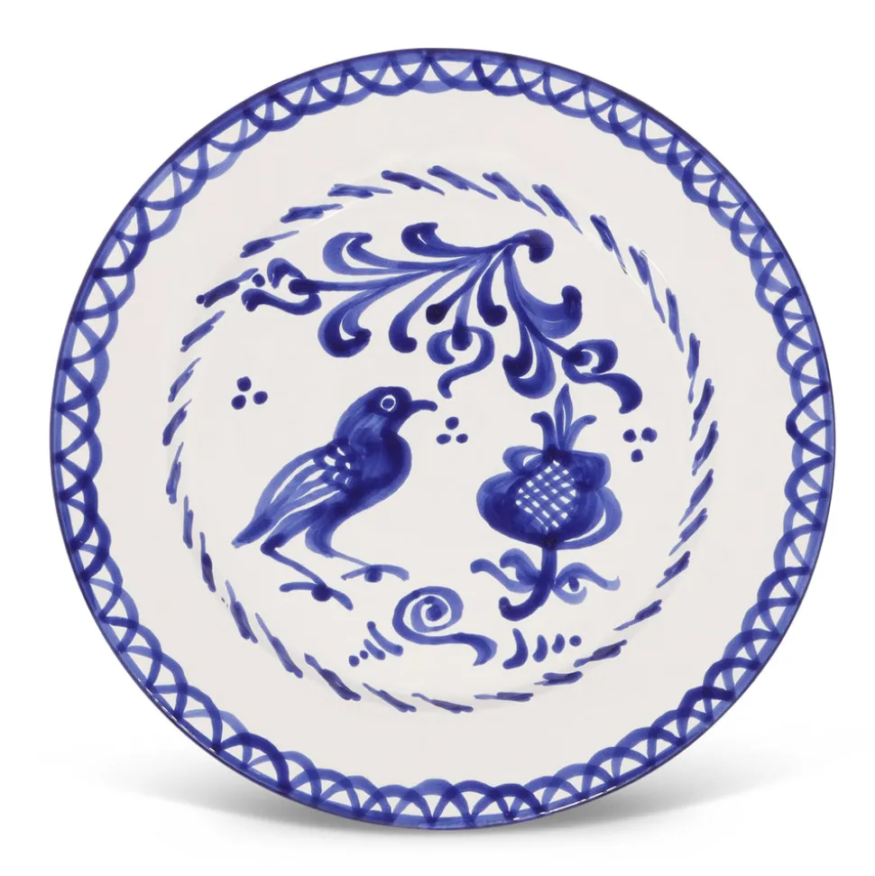 Using ancient techniques and Lebrillo motifs that date back to the 16th century, each Pomelo Casa piece is handmade and hand-painted by only five small, family-run workshops in Granada. For the first time, they are being exported outside of Europe, so that the gorgeous, simple, timeless patterns of Southern Spain can be shared with the world, making it brighter in the process. Casa Blanca & Negra Dinner Plate with Traditional Designs features pastoral scenes—birds and pomegranates—and delightful pattern in a deep shade of blue. Because of their handmade nature, each piece may have a slight variation in pattern as a result. Minor imperfections are not considered flaws but instead add to the authenticity and charm of these beautiful home goods.