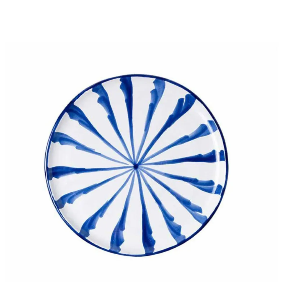 Hand-painted with a blue candy cane stripes, the Casa Azul Salad Plate is subtly striking and well-suited for dining, table decoration, or as wall decor. (There are two holes on the back that make for easy hanging.) Each Pomelo Casa piece is handmade in Southern Spain by ceramicists who have been using the same techniques for over five centuries and may have a slight variation in pattern as a result. Minor imperfections are not considered flaws but instead add to the authenticity and charm of these beautiful home goods.