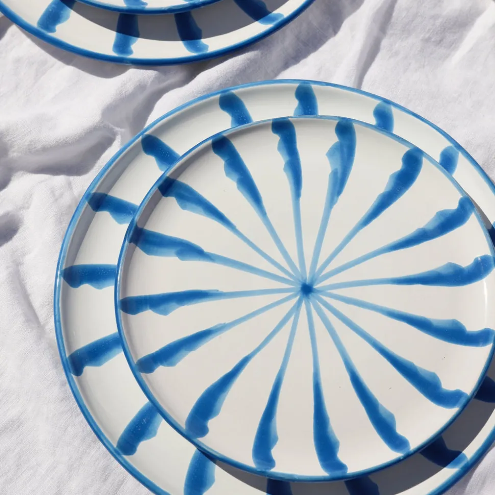Using ancient techniques and Lebrillo motifs that date back to the 16th century, each Pomelo Casa piece is handmade and hand-painted by only five small, family-run workshops in Granada. For the first time, they are being exported outside of Europe, so that the gorgeous, simple, timeless patterns of Southern Spain can be shared with the world, making it brighter in the process. Casa Celeste Dinner Plate with Candy Cane Stripes features carefully laid stripes, a delightful pattern in a delightful blue. Because of their handmade nature, each piece may have a slight variation in pattern as a result. Minor imperfections are not considered flaws but instead add to the authenticity and charm of these beautiful home goods.