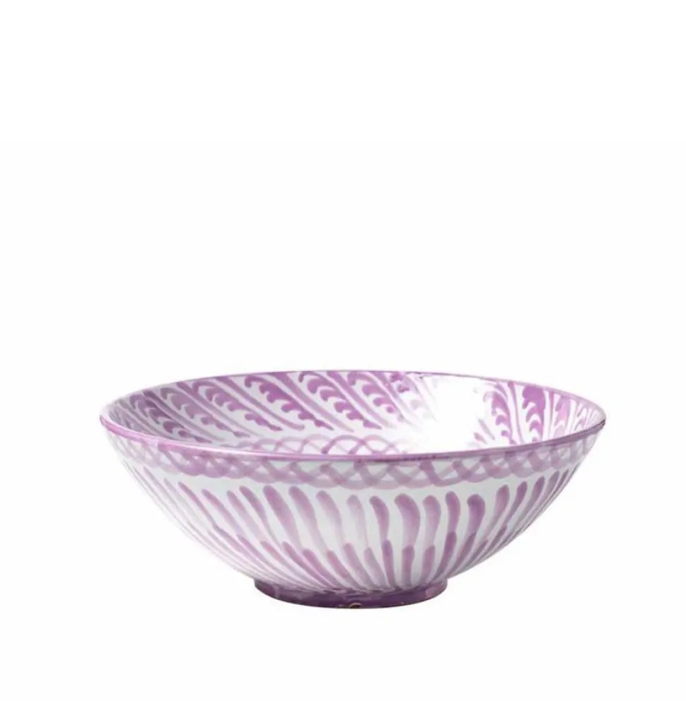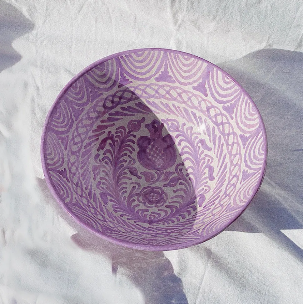 Hand-painted with a traditional Spanish “Lebrillo” design featuring birds and pomegranates, the Casa Lila Large Bowl is subtly striking and well-suited for dining, table decoration, or as wall decor. (There are two holes on the back that make for easy hanging.) Each Pomelo Casa piece is handmade in Southern Spain by ceramicists who have been using the same techniques for over five centuries and may have a slight variation in pattern as a result. Minor imperfections are not considered flaws but instead add to the authenticity and charm of these beautiful home goods.