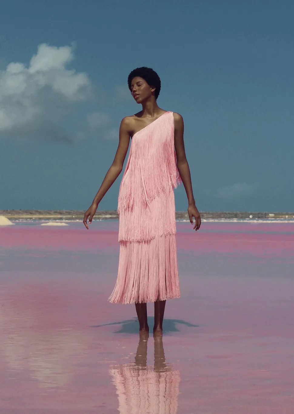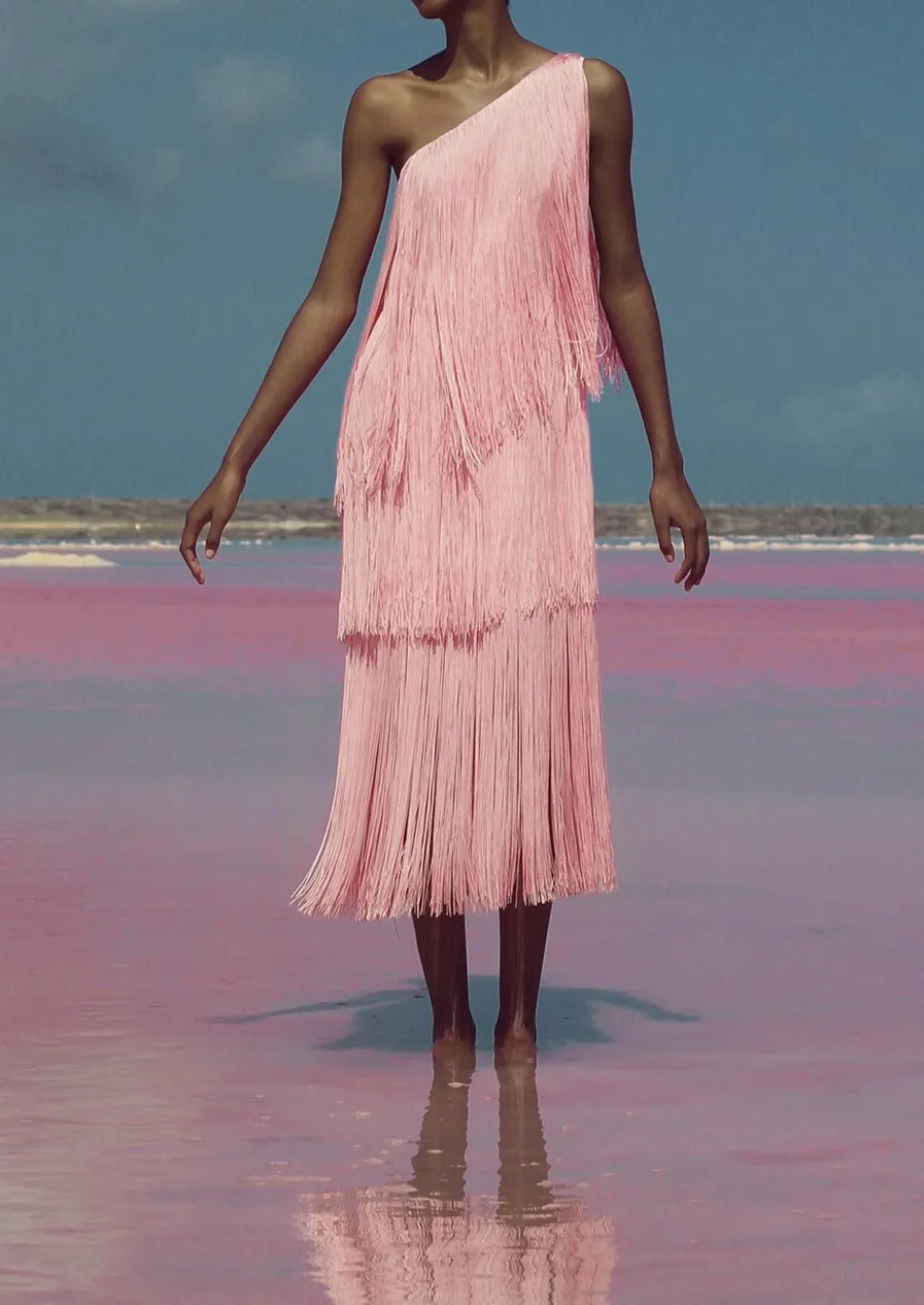 Founded by Daniela Panaro, No Pise La Grama, which translates to “don’t step on the grass,” is a Venezuelan fashion brand known for its feminine, timeless designs. As the name suggests, there’s a strong connection to nature through the elevated yet laid-back aesthetic inspired by travel and the art of traditional craftsmanship. The Cascada Dress In Pink is the embodiment of effortless elegance. This one shoulder maxi dress features layers of the brand’s signature fringe, creating a columnesque silhouette that is elongating, elegant, and ideal for your next special occasion.