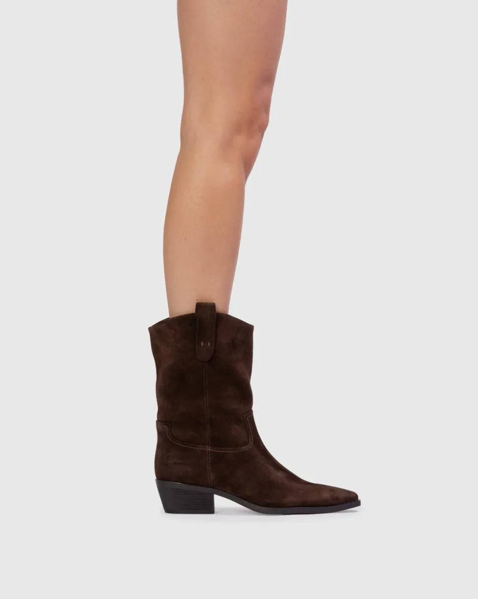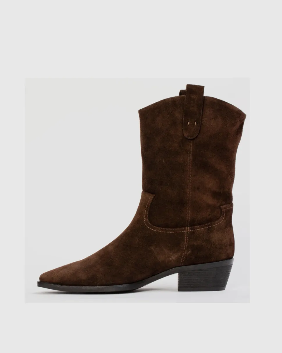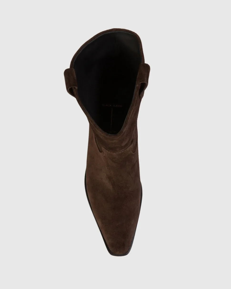 Founded by Kris Avakia in Montréal, Black Suede Studio fuses heritage, passion, and fine craftsmanship to form a line of forward-thinking, luxury footwear. The Casey 55 in Dark Brown Suede is a Western-inspired boot, crafted in brushed calf suede with pull tabs and classic stitching detail. Set on a traditional low heel, this versatile style brings a modern edge to an iconic silhouette, making it an effortless choice for everyday wear.
