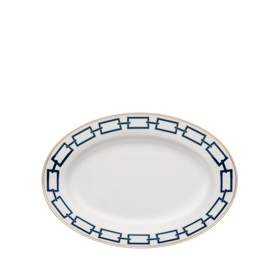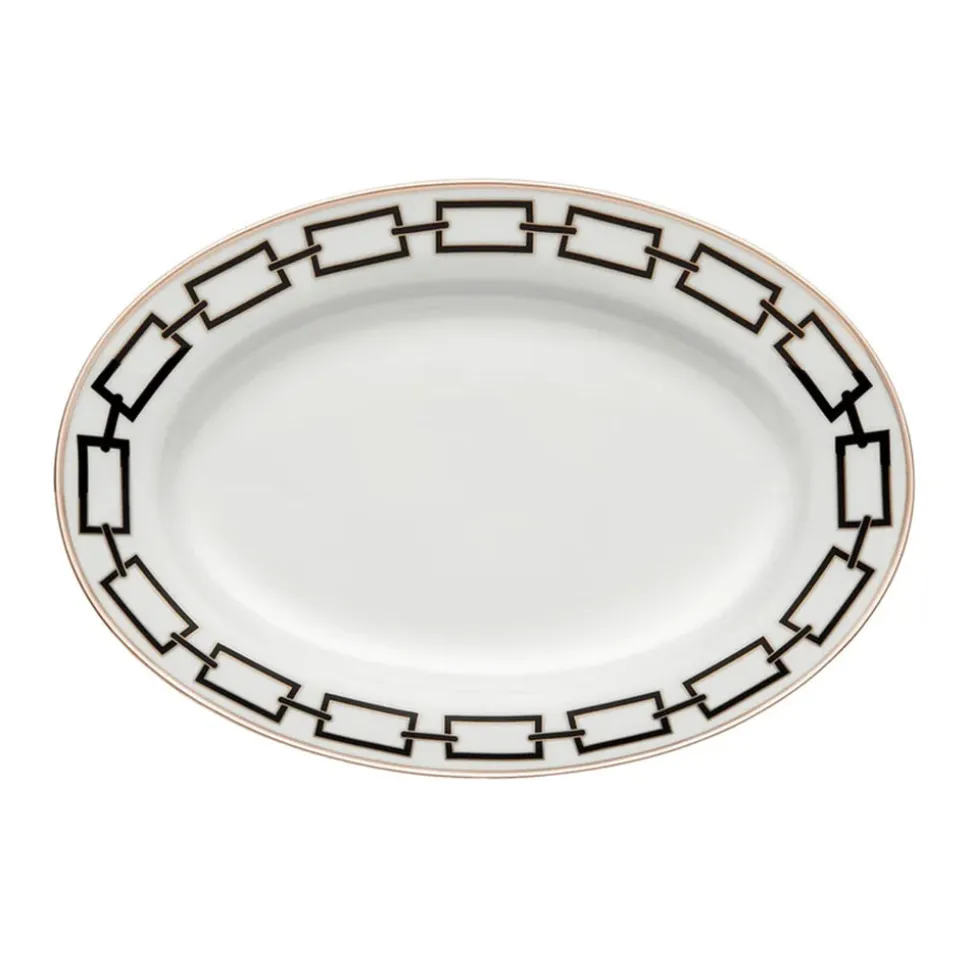 For nearly 300 years, Ginori 1735 has intertwined manufacturing excellence and timeless elegance from the family‚ estate in Doccia, Tuscany. Through the Baroque and romanticism, into the modern era‚guided by creative director Gio Ponti‚and beyond, the storied tableware and home decor brand‚ focus remains the same: turning porcelain into pure beauty. The Catene serieswas an exemplary product of legendaryarchitect Gio Ponti‚vision:elegant in its essentiality but also explosive and disruptive in its geometric movement. The Catene Large Oval Platteris an artful and modern way to serve family-style courses, as well as larger mains like meats off the grill, pastas, salads, and more.