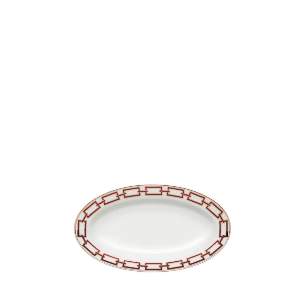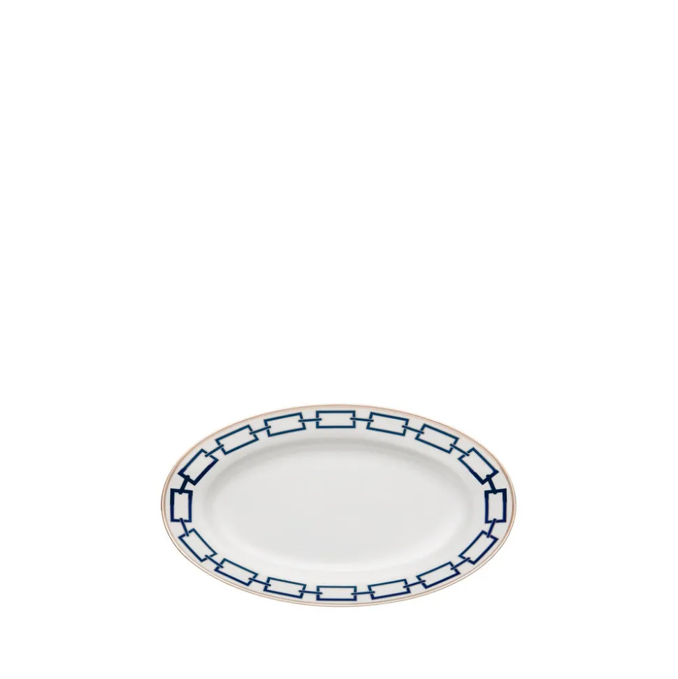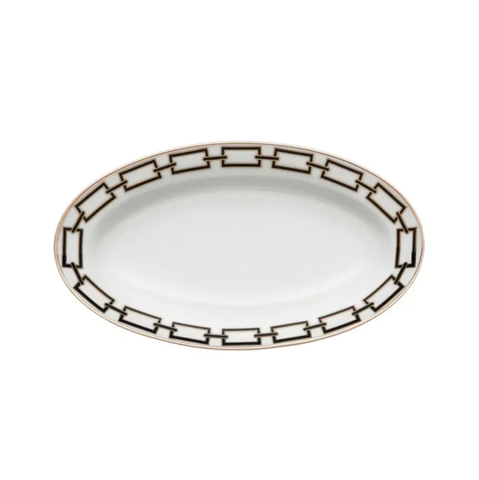 For nearly 300 years, Ginori 1735 has intertwined manufacturing excellence and timeless elegance from the family‚ estate in Doccia, Tuscany. Through the Baroque and romanticism, into the modern era‚guided by creative director Gio Ponti‚and beyond, the storied tableware and home decor brand‚ focus remains the same: turning porcelain into pure beauty. The Catene serieswas an exemplary product of legendaryarchitect Gio Ponti‚vision:elegant in its essentiality but also explosive and disruptive in its geometric movement. TheCatene Pickle Dishis an artful and modern way to serve small apps, sides, and of course, pickles.