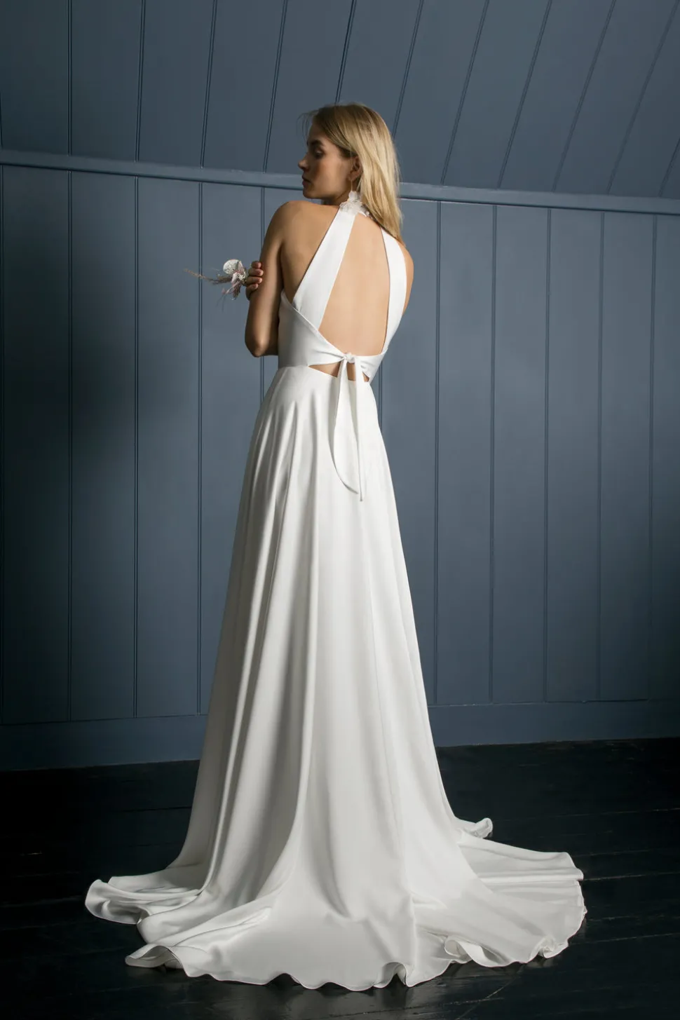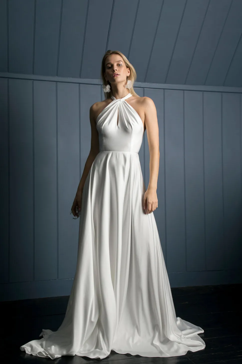 Luxury bridalwear brand Halfpenny London weaves Brit cool with a luxe sensibility, creating innovative, chic dresses and separates for the modern woman. The Cedar Dress is a classic silhouette with Old Hollywood glamour vibes that will look as great at pre- and post-wedding events as it will floating down the aisle.