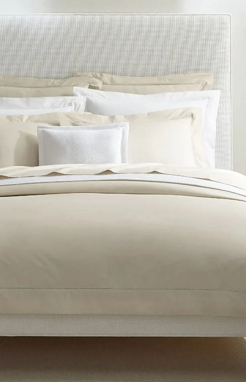 Renowned for their signature Italian craftsmanship, Sferra linens are famous for their quality, and lauded for their elegance, the world over. The Celeste Duvet Cover in Bone is a beloved staple, woven from fine long-staple cotton percale for an exceptionally smooth and breathable feel. Its subtle elegance and soft neutral tone offer a refined layer of comfort and versatility to any bed.