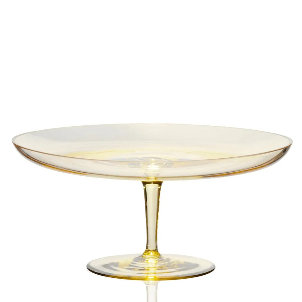 Caskata makes dinnerware for those who love to entertain. That joie de vivre and celebratory atmosphere makes its way into each piece of the brand’s blend of classic and contemporary designs, recognizable by their creative patterns, enduring quality, and light touch. Inspired by New York City supper clubs, like the Stork Club, the Celia Collection is a sophisticated fusion of sleek lines and 1940‘s glamor. Carefully designed, using mouth-blown crystal, the Celia Citrine Cake Pedestal is as much a piece of art as it is a serving place for your delicious desserts.