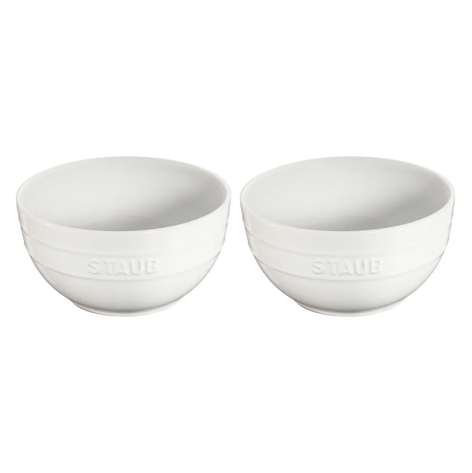 Rooted in French culinary heritage, Staub is beloved by professional and home chefs for its exquisite craftsmanship, exceptional performance, and timeless beauty. Staub stoneware gently retains heat and won’t absorb moisture, producing a delicious result for all your favorite dishes. The Ceramic 2-pc Large Universal Bowl Set in White are the most versatile bowls for prepping, sharing, serving, mixing and more. Use it for everything from plating up pasta, and brothy stews, to whisking batter, to serving salads, to presenting fruit. You really can’t go wrong.