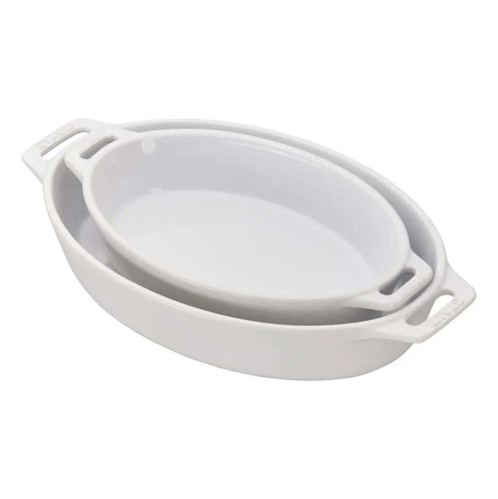 The elegance and functionality of Staub ceramics go from freezer to oven to table. The glass porcelain finish matches Staub’s cast iron to mix perfectly on your tabletop. Oven and broiler safe up to 572˚F, ceramics can also be used in the microwave and are dishwasher safe. Highly scratch, impact, and thermal shock resistant.