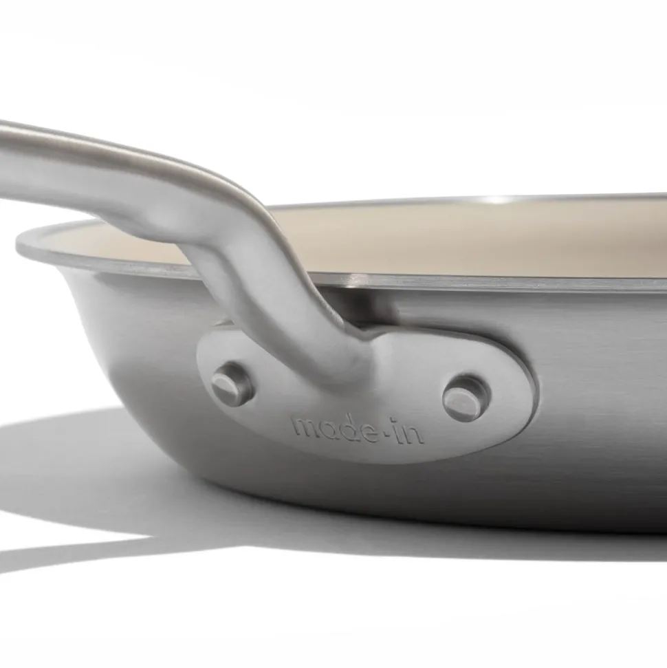 Premium 5-ply stainless clad. Stay-cool handle. Optimized for Induction. Non Stick, Non-toxic ceramic coating. Stay-cool handle. Compatible with gas, electric, and induction cooktops. The first of its kind, the CeramiClad™ Frying Pan combines the even and responsive heat control of the Award Winning 5-Ply Stainless Clad Cookware with a proprietary Non Stick ceramic coating. Simple to use and just as simple to maintain, the American-Made ceramic coating is made without PFAS, PFOA, PTFE, lead, and cadmium, making for a clean staple that’ll last longer than lower-cost counterparts. Made in the USA.