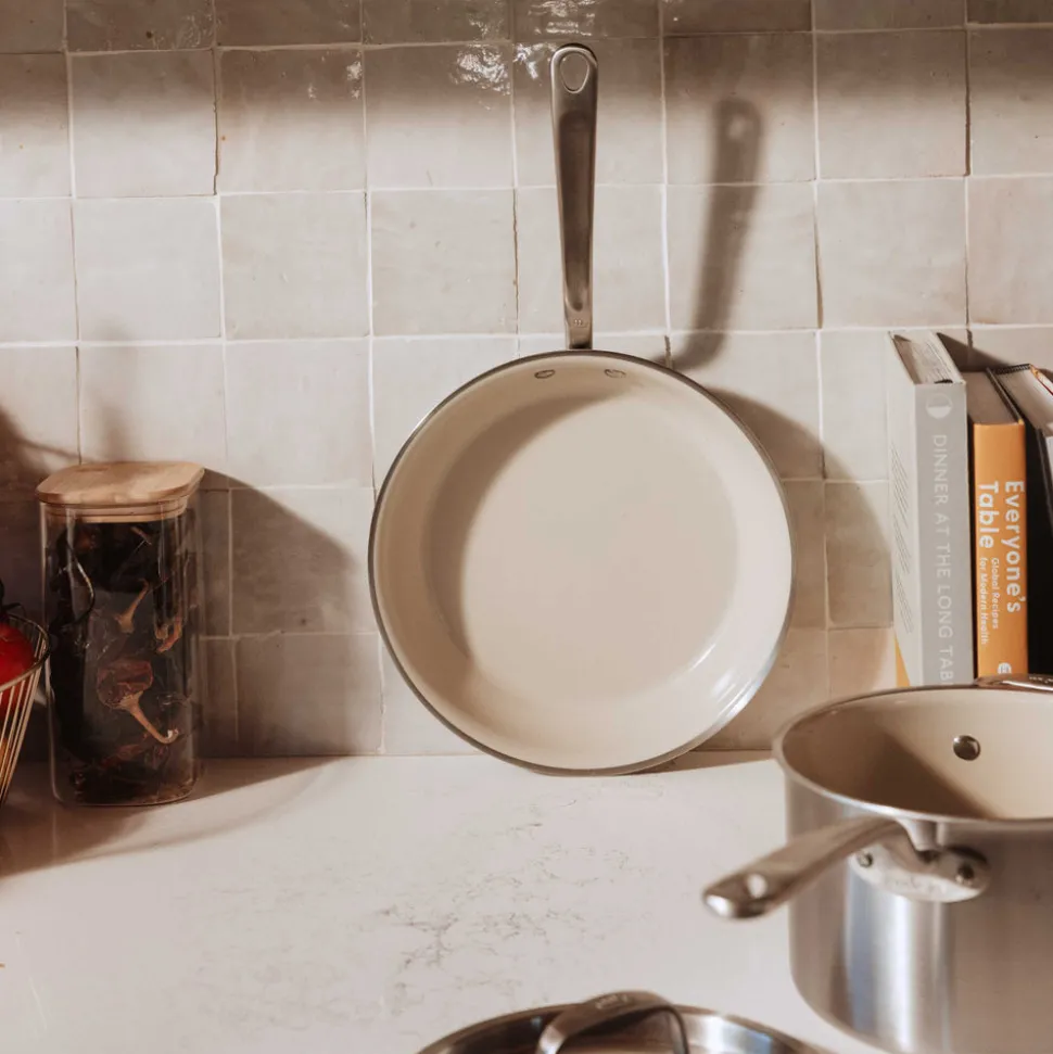 Born out of a 100-year old, family-owned restaurant supply business, Made In brings restaurant-quality, performance kitchenware to home cooks around the world. The brand sources the highest quality raw materials and designs products to the exacting standards of the world’s best chefs. Designed for everyday cooking, the multi-purpose CeramiClad™ 10″ Non Stick Fry Pan is compatible with electric, gas, and induction cooktops. With solid-but-light construction, and wall curvature, they are workhorses for everything from sautéd vegetables to crisp-skinned seared fish, over-easy fried eggs, stacks of pancakes, and beyond. Unlike cheaper alternatives, they are safe up to 550 degrees and feature a Stay Cool Handle™, ideal for dishes that start on the stove and get finished in the oven.