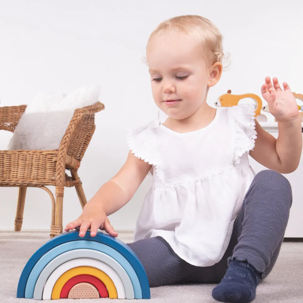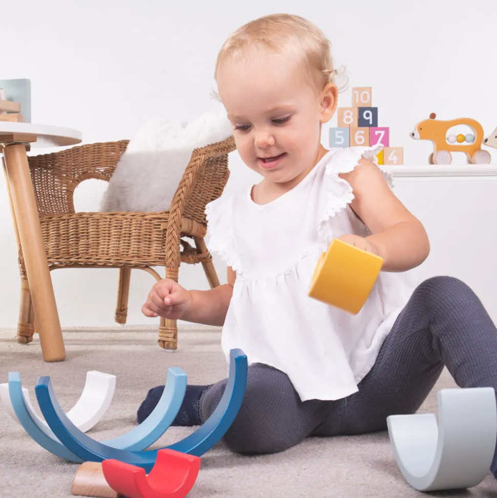 Quality has always been at the heart of Bigjigs Toys, a family business that began in 1985 with jigsaws crafted from a garden shed in Kent, England. Today the company boasts a wide range of toys and games that are not only safe, and made to last, but complement childhood development through fun, exploration and learning. Stack, build and play with the versatile Certified Rainbow Arches, ideal for encouraging open-ended play. With these colorful stacking arches, little hands can assemble a variety of shapes and objects while learning all about different sizes, textures and colors. Helps to develop kids’ creativity and dexterity.