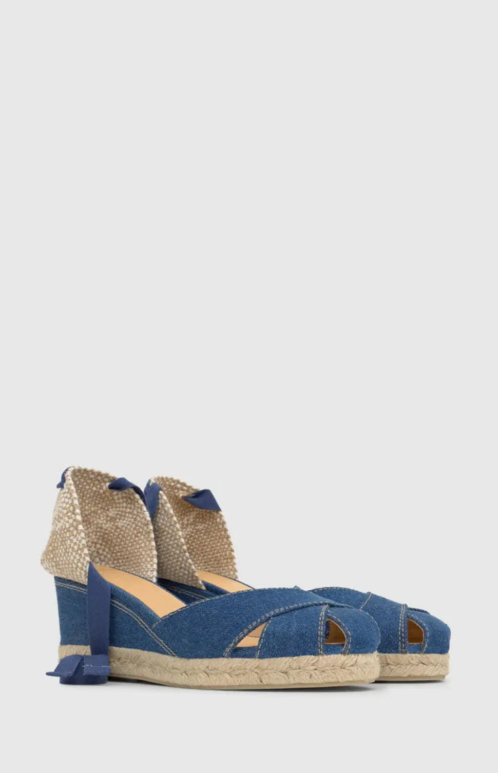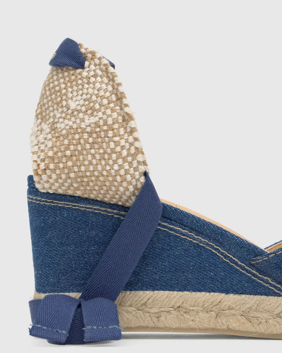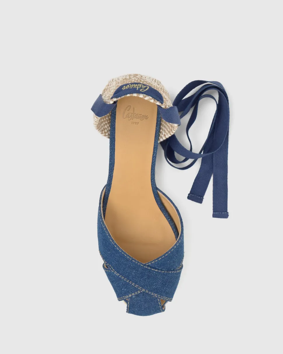 Founded in 1927, Castañer has elevated the espadrille into a sophisticated symbol of timeless design. With a commitment to craftsmanship, tradition, and natural materials, the brand continues to blend heritage with innovation, earning global recognition while staying true to its authentic roots. The Chabeli 6 espadrille in denim features ribbon tie closures, a semi-open toe, cushioned insole, and a 7″ jute wedge wrapped in matching denim. This artisanal design offers a balance of casual charm and elevated comfort.