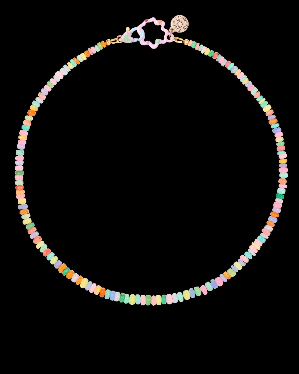 An Instagram and celebrity-favorite, Susan Alexandra’s carefully designed pieces bring whimsy to another level, and another world. Enter a youthful landscape of candy-colored jewelry and brightly beaded bags as joy, fun, and fashion shine forth from every piece and pop of color. The brand takes the luscious, fruity colors of your favorite candy bracelet—avocado, creamy pink, butter, and peach—and brings them to new heights with the Chantilly Opal Necklace.