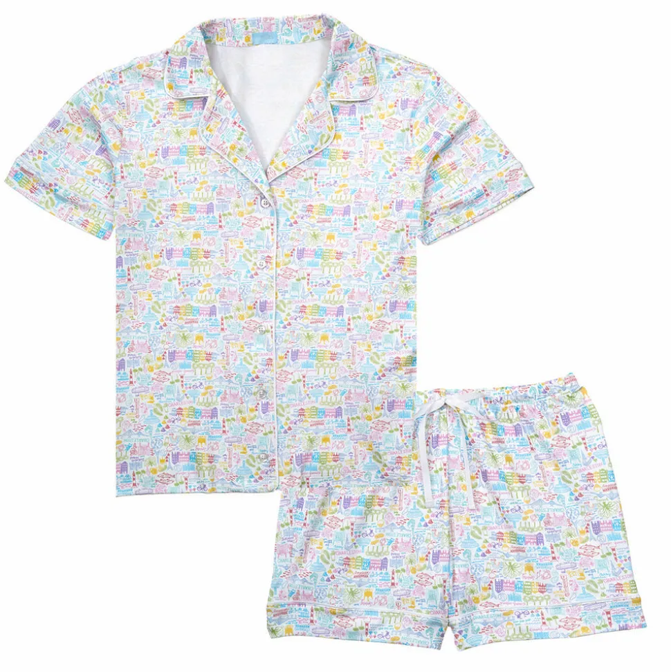 Designed with a mom’s love and made with care, Boston-based Joy Street produces small-batch kids clothes that look classic from afar, but delight in details. Crafted in luxurious 100% Peruvian pima cotton in a female-run factory, every print is hand-drawn by the brand’s founder, a new mom who prizes fit and quality above all else, and isn’t afraid of a little fun. The Charleston Women’s Button Front Short Pajama Set in Rainbow Row Multi is like taking a trip down that historic city‚ Rainbow Row, with depictions of the Pineapple Fountain, pearls, shrimp and grits, and sailing.