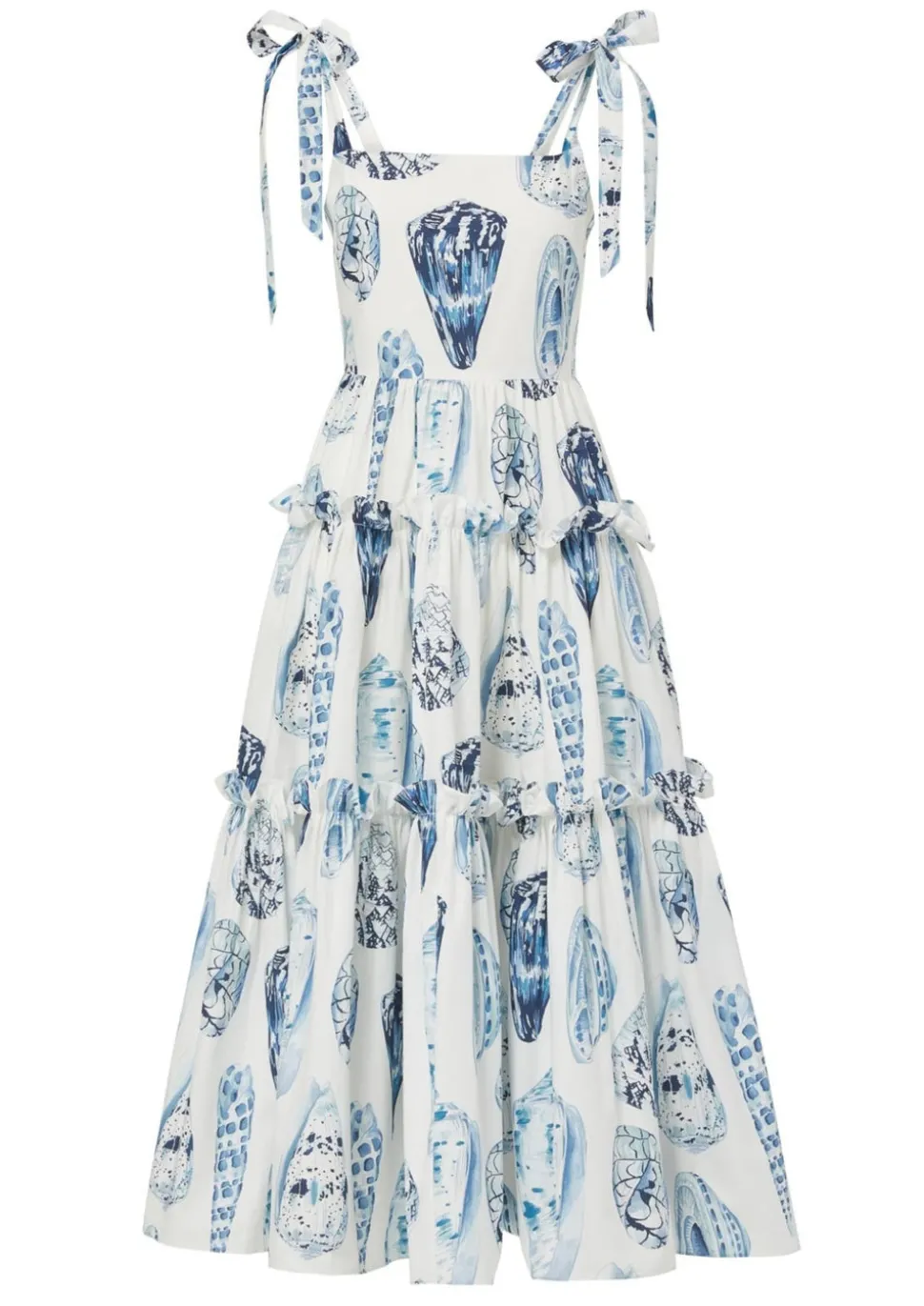 MAE New York seeks to revitalize New York’s historical garment district by creating small-batch and made-to-order collections—modern interpretations of 1960s glamor—highlighting tailoring, luxury materials, and craftsmanship. A collaboration with the legendary House of Scalamandré in its elegant print, the Charlotte Dress In Coquina is a hewavenly maxi with adjustable tie straps for the most flattering fit, and smocking panel at back for all day comfort.