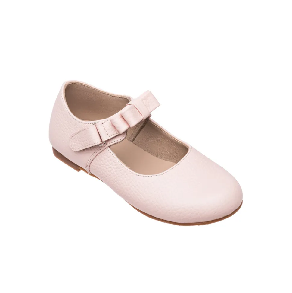 Premium pebbled leather with natural sheepskin lining. Classic Mary Jane with bow detailing. Lightweight, flexible rubber outsole. Recycled leather insoles with Bontex cushioning. Reinforced heel and toe for added protection.
