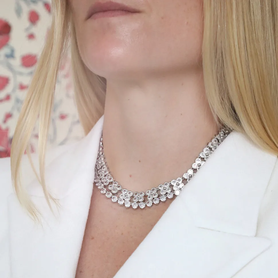 Inspired by art, architecture, and the founder’s global journeys, ASHA introduces sophisticated jewelry and accessories made from only the finest materials. From everyday glamour to the red carpet, these statement pieces are simultaneous classics. Sophisticated without being too dazzling, the Charlotte Pavé Collar features cubic zirconia in clover silhouettes.