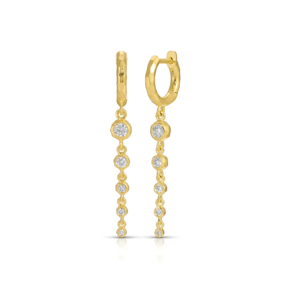 18K yellow gold. Diamonds. Micro Gabby hoops with five graduated bezel-set drops.