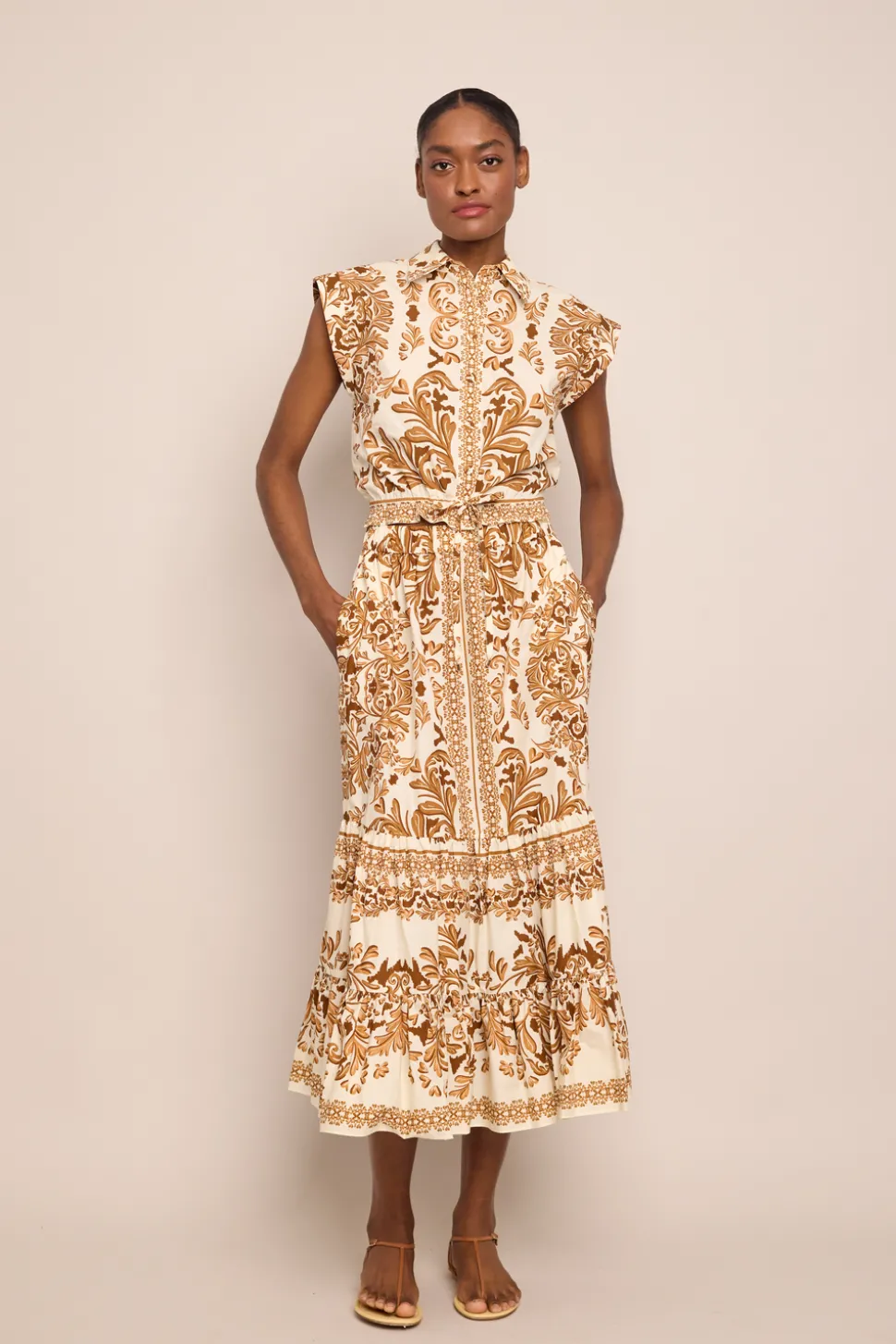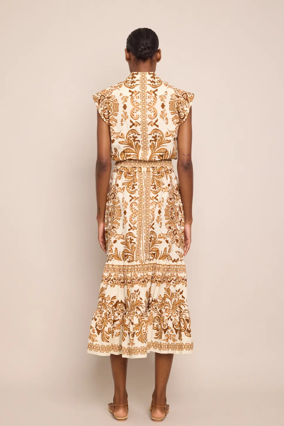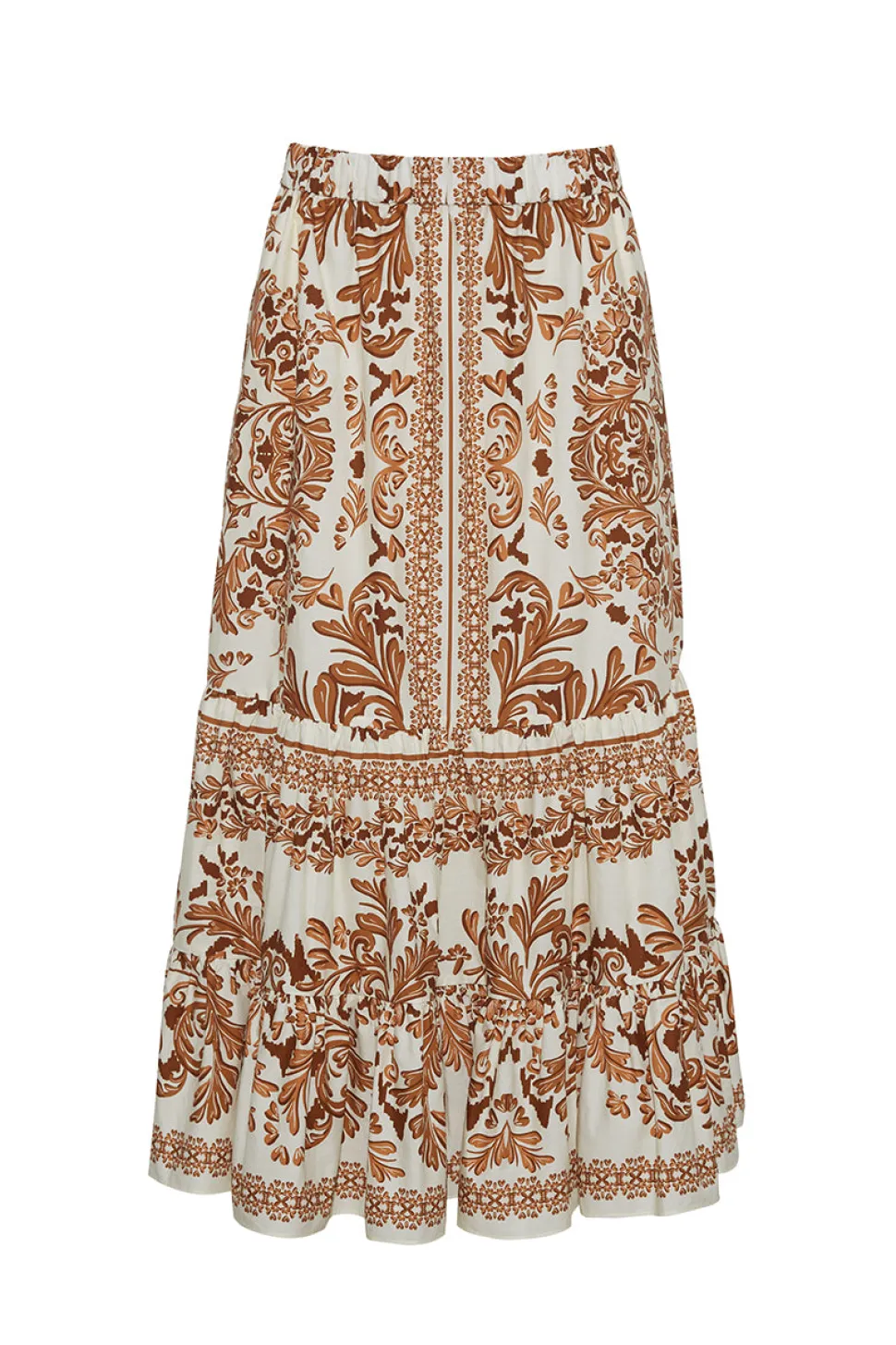 Founded by three New York City-based mothers who met through their kids, Cara Cara’s hallmarks include crisp poplin, house-designed prints, and casual glamour. The inspiration for their ethical womenswear comes from interior design, as well as the world’s most exotic locales. The Chase Skirt in Saltaire Brown is a versatile staple with relaxed polish. Cut from breathable cotton poplin in a tiered silhouette, it flows effortlessly and flatters with every step. Designed with an elastic waistband for styling high or low on the waist, this piece is perfect for mixing and matching—whether with a coordinating top or a casual knit.
