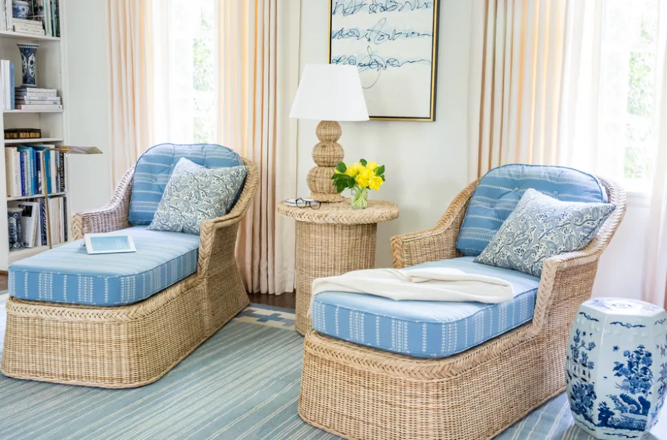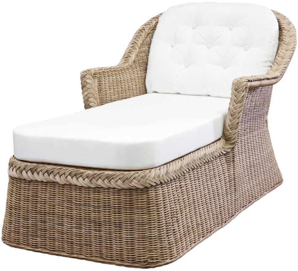 Mainly Baskets Home is dedicated to crafts made of rattan and the ancient and beloved process of weaving known as wicker. Inspired by antique and vintage designs, as well as talented collaborators and skilled artisans, these pieces share a sense of both quality and timelessness. Developed with interior designer Sarah Bartholomew, the Chatham series captures the warm, inviting spirit of Northeastern cape towns, villages and hamlets. The Chatham Chaise offers the ultimate comfort, giving you a special place to sit and read or perhaps take a nap. An optional cushion is available in a versatile Sunbrella fabric.