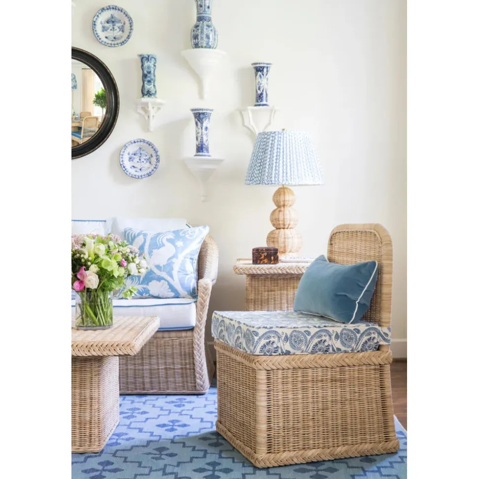 Mainly Baskets Home is dedicated to crafts made of rattan and the ancient and beloved process of weaving known as wicker. Inspired by antique and vintage designs, as well as talented collaborators and skilled artisans, these pieces share a sense of both quality and timelessness. Developed with interior designer Sarah Bartholomew, the Chatham series captures the warm, inviting spirit of Northeastern cape towns, villages and hamlets. The Chatham Slipper Chair embodies its 18th century roots as a piece most often found in women’s bedrooms, offering both grace and refinement, with a great deal of comfort, too. An optional cushion is available in a versatile Sunbrella fabric.
