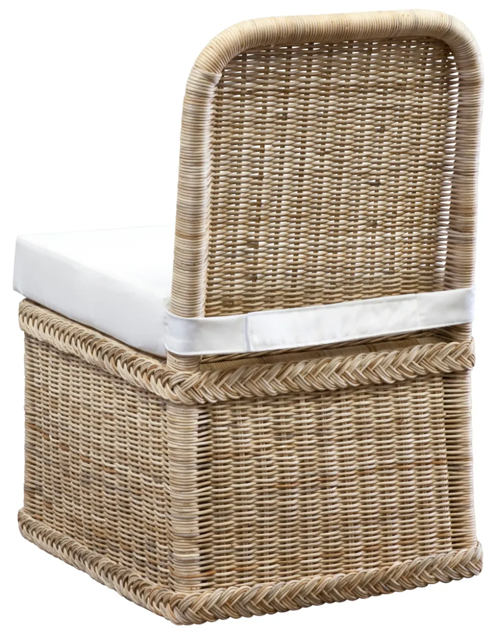 Spot clean. Natural rattan is not suitable for outdoor use. Rain and direct sunlight affect the finish over time. To preserve its original color and beauty, avoid exposure to the sun. Avoid putting undue stress (like standing or kneeling) on wicker rattan. If you need to clean your item, vacuum the rattan weaves periodically using a soft brush attachment or comb the surface with a soft bristle brush. For a deeper clean, wipe down with a damp cloth, ensuring the product is completely dried afterwards.