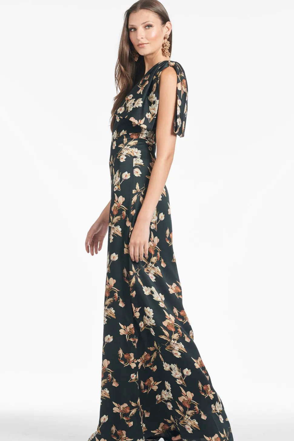 Born in India, Sachin and Babi bonded at New York’s Fashion Institute of Technology and launched an embroidery business, working with top houses, like Oscar de la Renta, and Manolo Blahnik. Today, the brand works with their own factory in Mumbai, controlling quality at every stage, and producing womenswear that is at once unique, beautiful, and wearable. Crafted in a crinkle georgette and cut on the bias, the Chelsea Gown in Black Venetia Petal falls into a column design for curves. The hand-tucked, collapsed bow at the shoulder provides a romantic finishing touch to your new, go-to party gown.