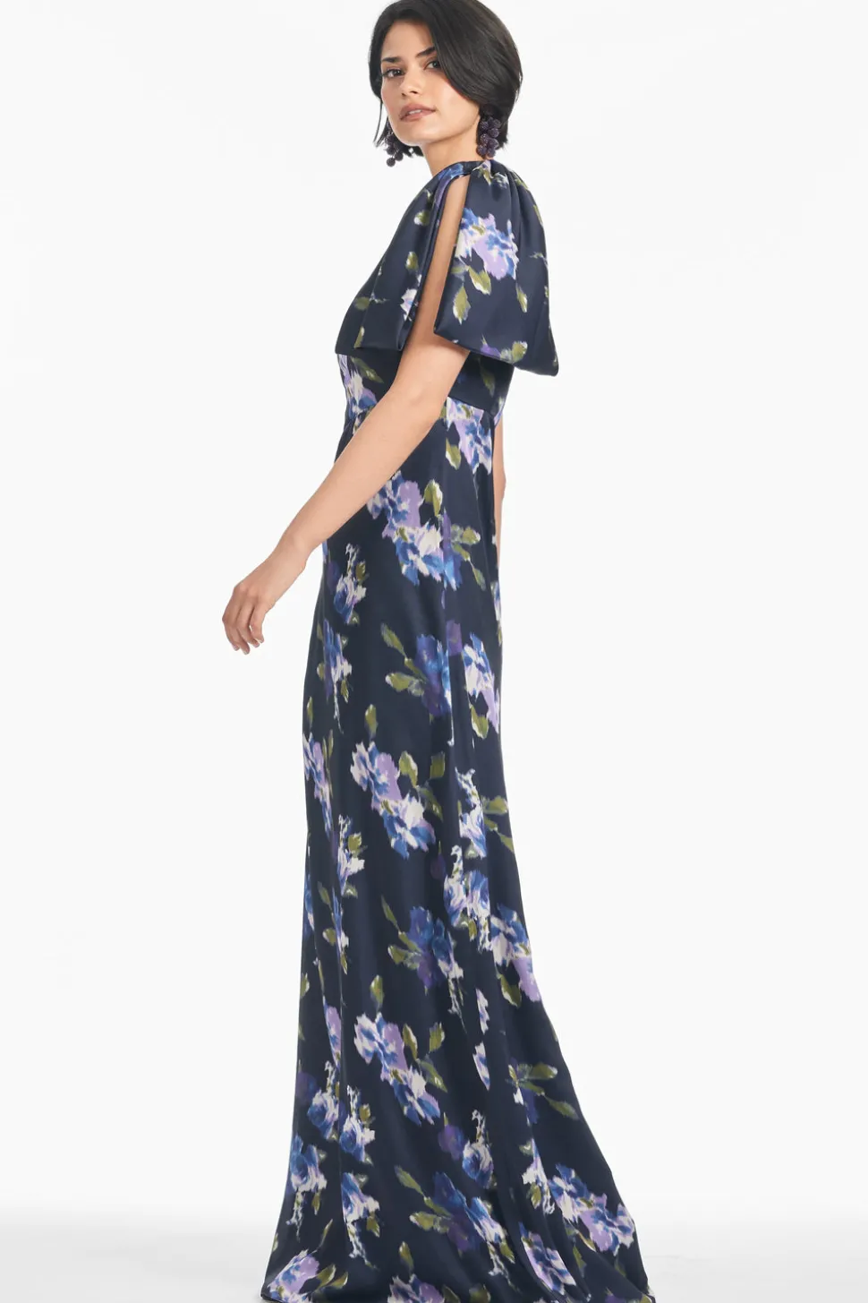 Born in India, Sachin and Babi bonded at New York’s Fashion Institute of Technology and launched an embroidery business, working with top houses, like Oscar de la Renta, and Manolo Blahnik. Today, the brand works with their own factory in Mumbai, controlling quality at every stage, and producing womenswear that is at once unique, beautiful, and wearable. Crafted in a crinkle georgette and cut on the bias, the Chelsea Gown in Midnight Corsage falls into a column design for curves. The hand-tucked, collapsed bow at the shoulder provides a romantic finishing touch to your new, go-to party gown.