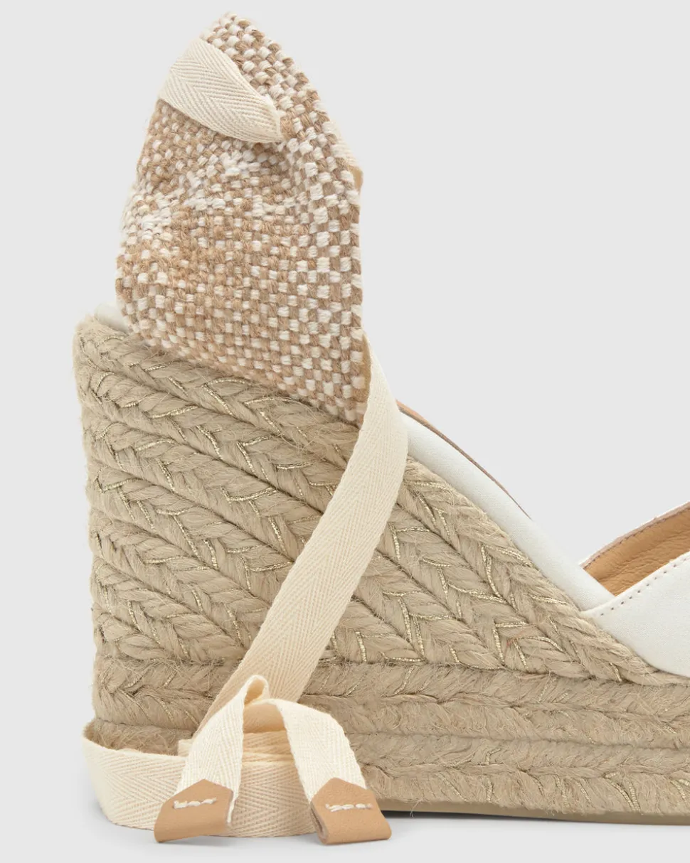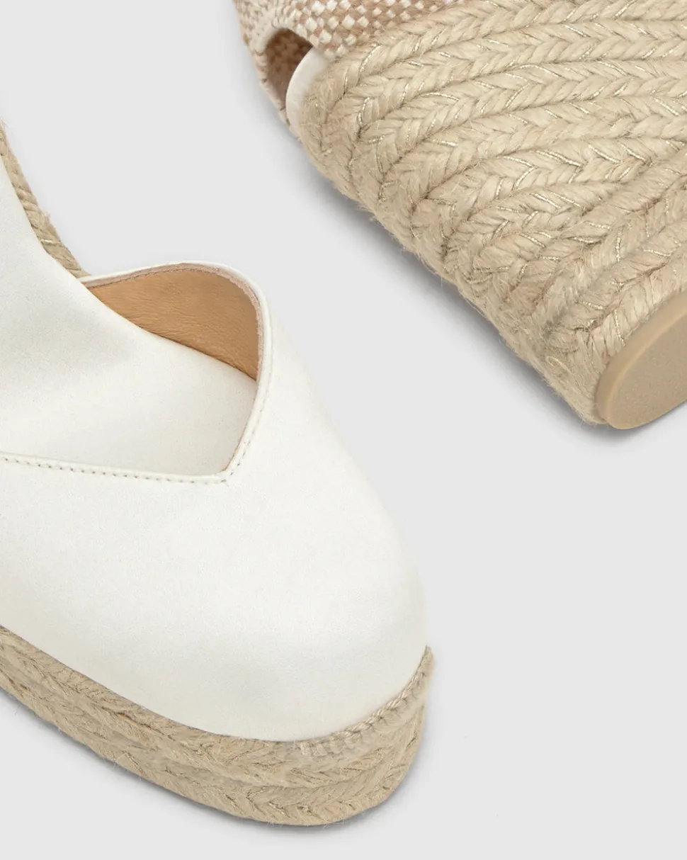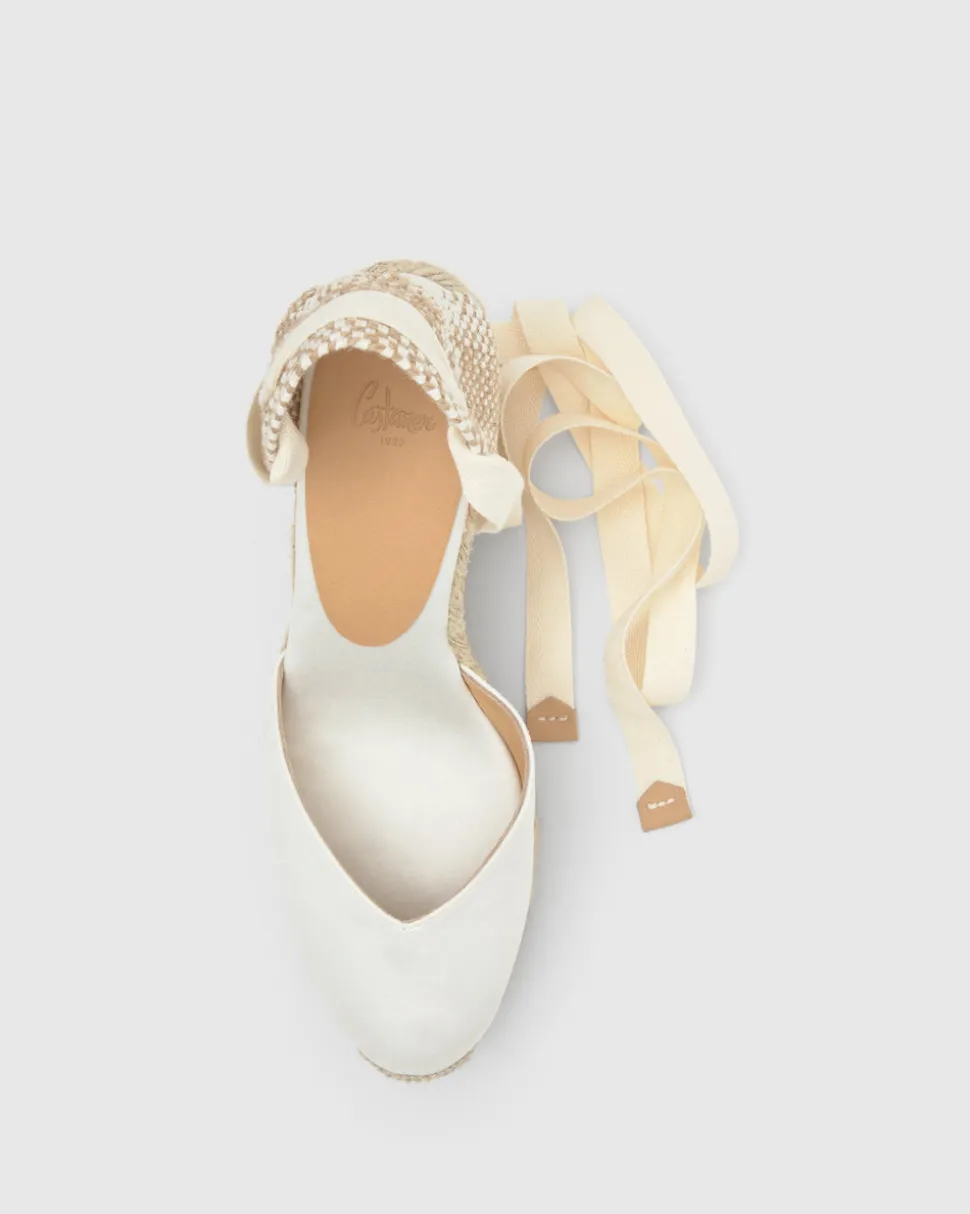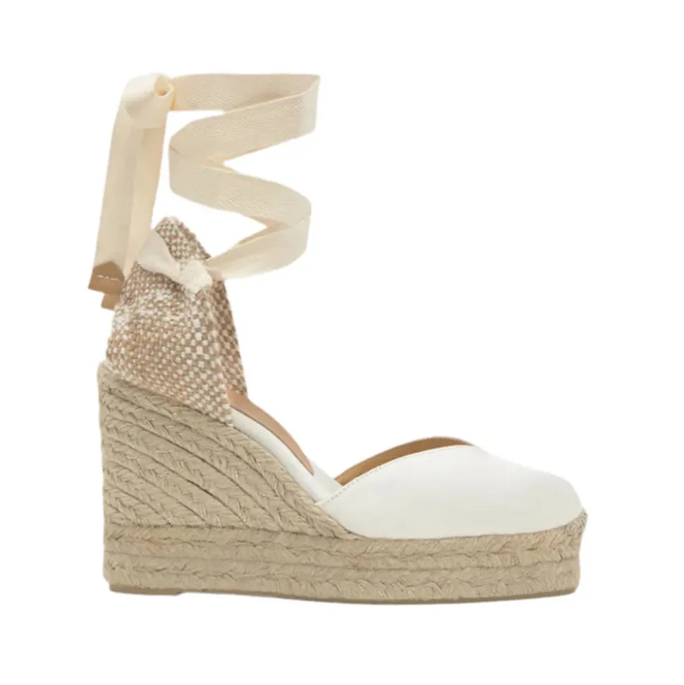 Founded in 1927, Castañer has elevated the espadrille into a sophisticated symbol of timeless design. With a commitment to craftsmanship, tradition, and natural materials, the brand continues to blend heritage with innovation, earning global recognition while staying true to its authentic roots. The Chiara 8ED in Écru is a crafted in satin with a lace-up closure, cushioned insole, V-neck, and a jute wedge.