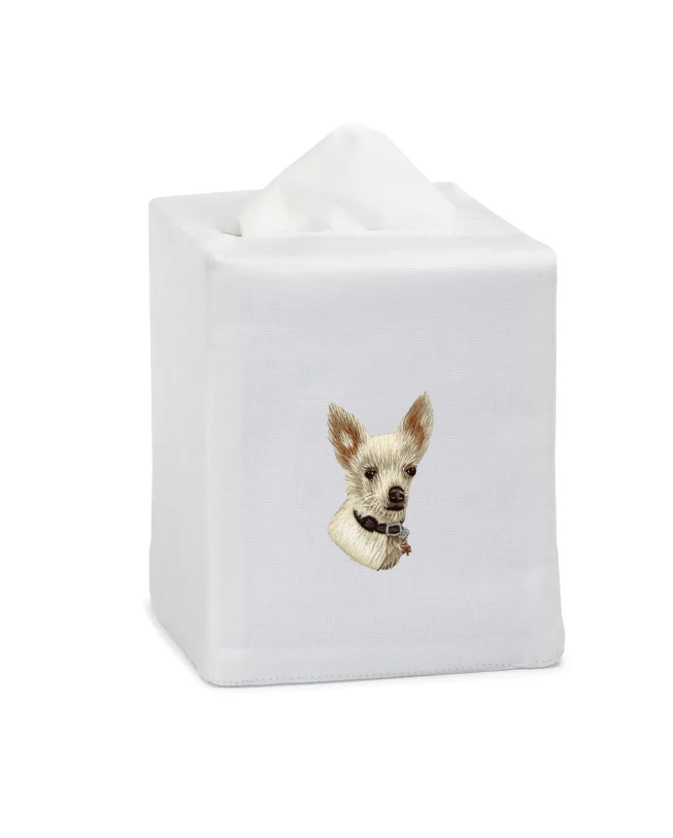 Founded in 2012, Henry Handwork brings joy to the everyday with handmade textiles for the home. Placing tradition and quality at the forefront, the brand resurrects the fading craft of hand-embroidery and needlework, embracing the heritage of finely-wrought European linens. The Chihuahua Tissue Box Cover features a delightful hand-embroidered chihuahua motif on cotton, blending whimsy and craftsmanship to elevate a household essential with personality and charm.
