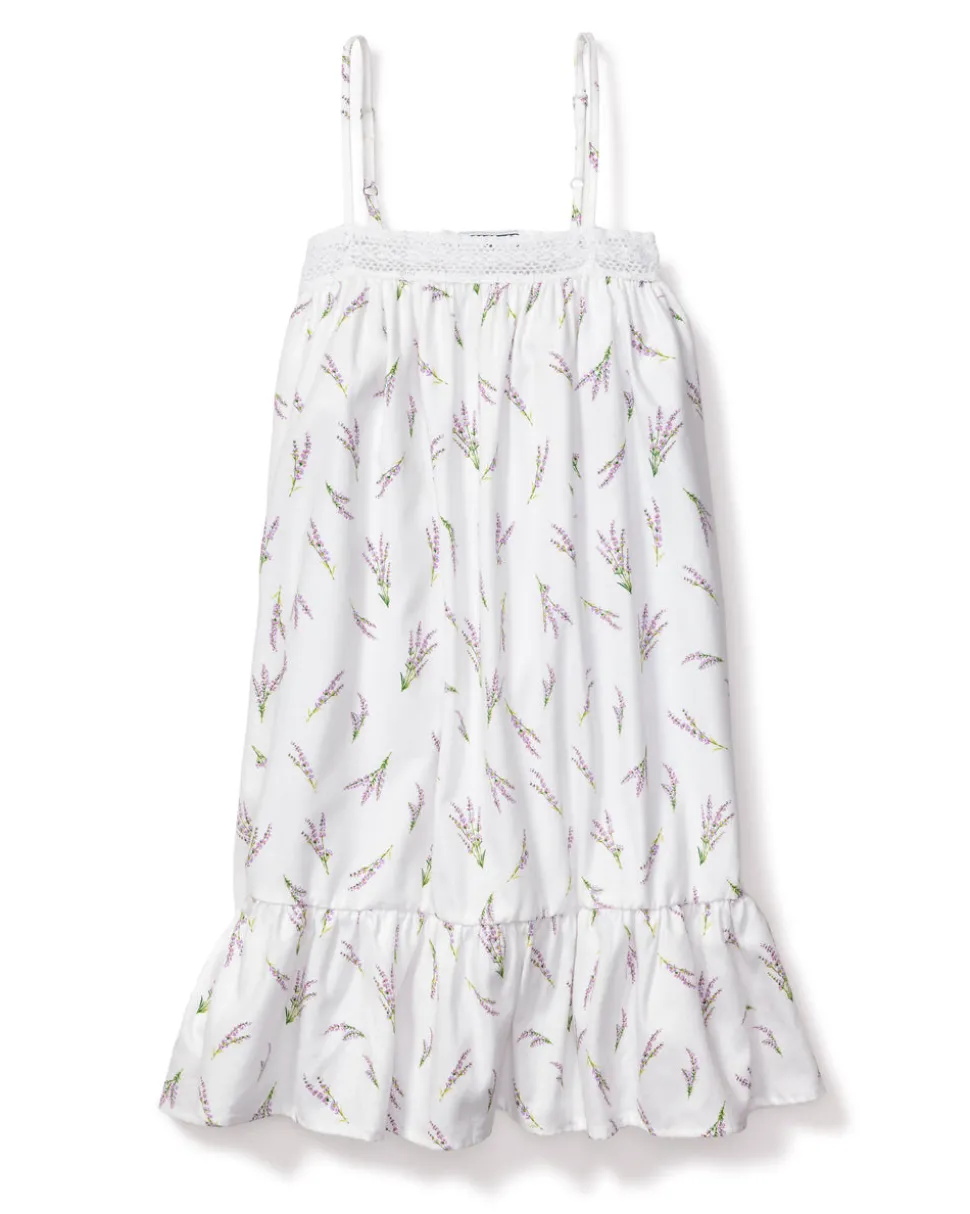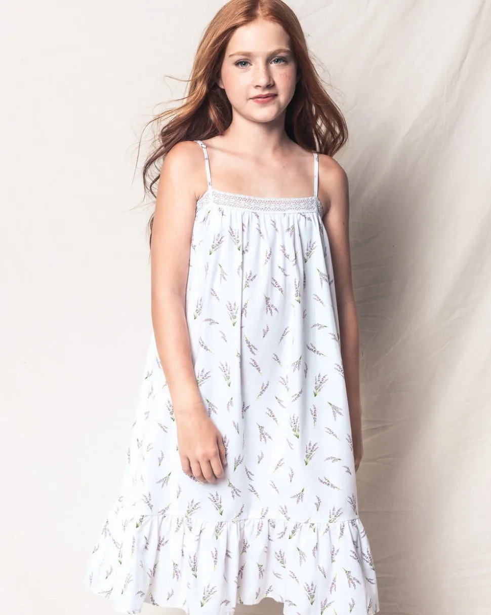 Petite Plume’s luxury sleepwear is a dream come true. Crafted in exquisite cotton with the finest attention to detail, Petite Plume delivers the utmost comfort and sophistication. Lacy sprigs of lavender flowers, long associated with France’s region of Provence, spread themselves luxuriously across this print in muted moss green and pastel purple that suggest their unforgettable scent. The Lily Nightgown pays stunning attention to detail with delicate lace and a wide hem.