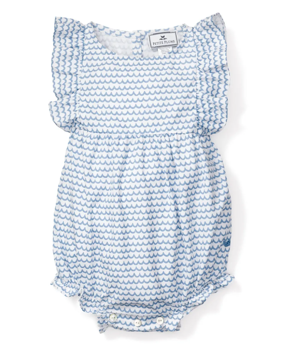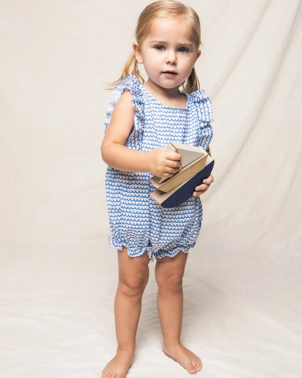 Petite Plume wishes you a “bonne nuit,” and in their luxury sleepwear, it’s hard not to oblige. Crafted in exquisite cotton, with the finest attention to detail, Petite Plume delivers the utmost comfort and sophistication. The La Mer Ruffled Romper print pays tribute to the color, scent, sound, and rhythm of the sea. This darling romper with sweet ruffle hems and sleeves and delicate pearl buttons is reminiscent of the Victorian era.
