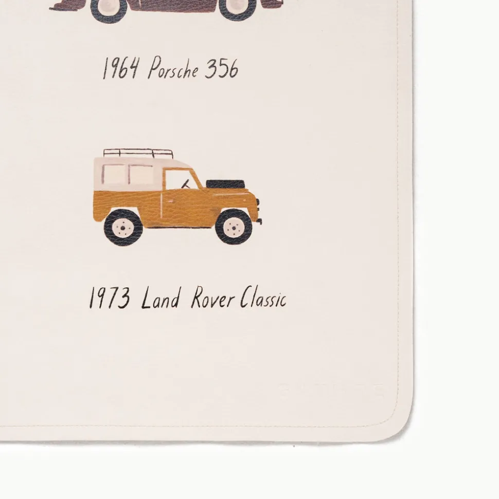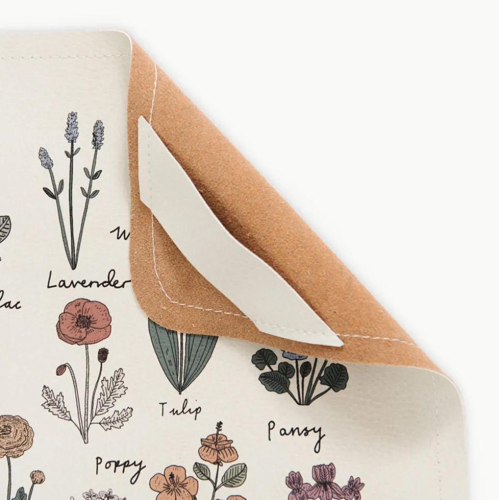 Premium look and feel. Wipeable and water-resistant. Folds compactly for easy storage and transportation. Ethically and responsibly made. Free of toxins, PVC, phthalates, and lead. CPSIA compliant. Bonded leather mats are backed with flocked suede, which contains 28% genuine leather.