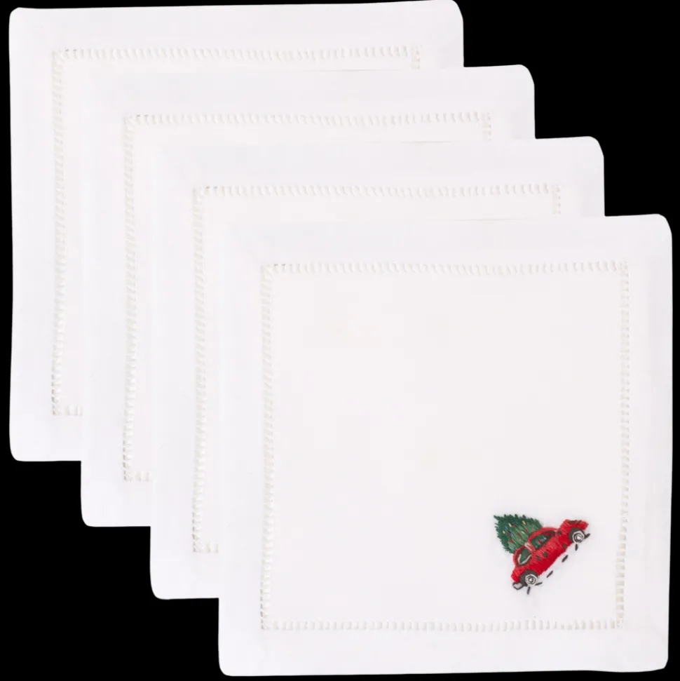 Founded in 2012, Henry Handwork brings joy to the everyday with handmade textiles for the home. Placing tradition and quality at the forefront, the brand resurrects the fading craft of hand-embroidery and needlework, embracing the heritage of finely-wrought European linens. The Christmas Tree Car Cocktail Napkin Set includes four white, hand-embroidered, 100% cotton squares, each finished and hemstitched by hand. These napkins will add a touch of holiday charm to any home.