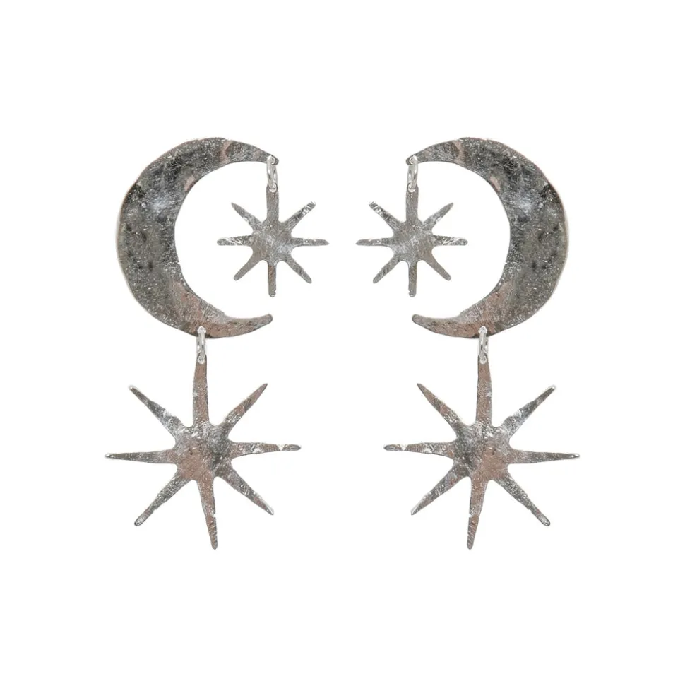 Founded in 2002 by designer Jade Gedeon, We Dream In Colour is powered by a team of women at their North Shore studio in Boston. Each piece of jewelry is assembled by hand, and the company works hard to operate in a socially conscious fashion every step of the way while creating their whimsical, elegant designs. The Chrome Hespera Earrings feature hand-shaped celestial motifs shimmer with hammered textural warmth.