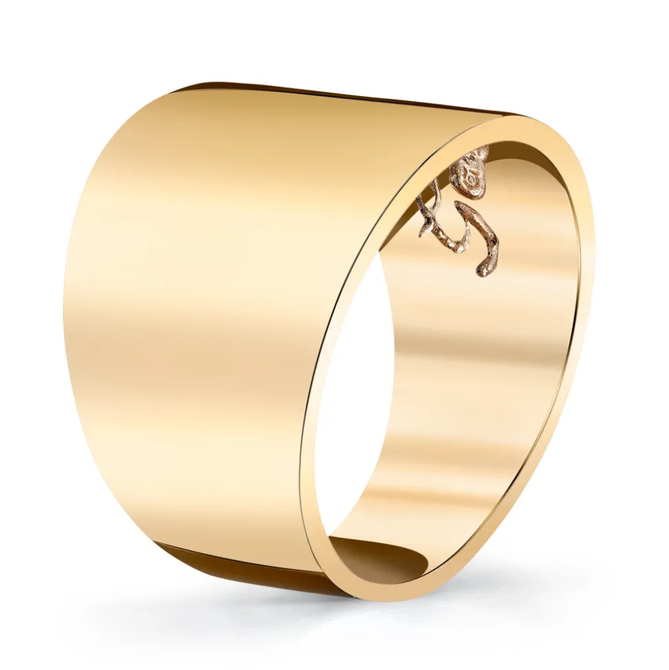 Sisters Gabriela and Teresita Artigas embrace the simple beauty in complexity, which is a credo that manifests in their Los Angeles-based jewelry brand. The duo is perpetually inspired by their upbringing in Mexico City heritage to design fine accessories for the modern woman. These heirloom pieces are meant for everyday wear—wherever the next adventure awaits. This distinctive Cigar Band Ring is thicker on top, tapering off toward the back.